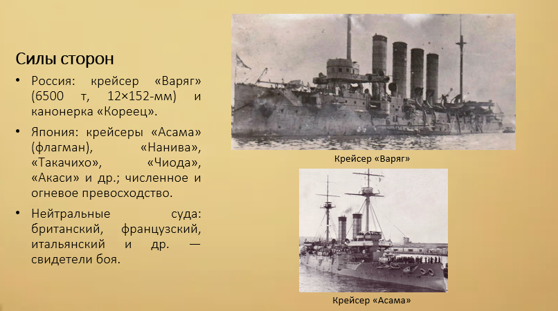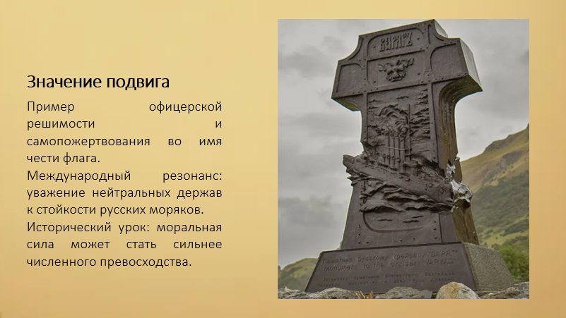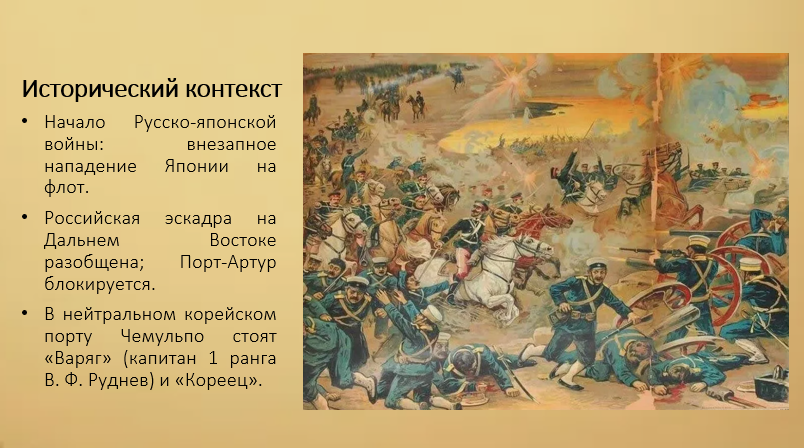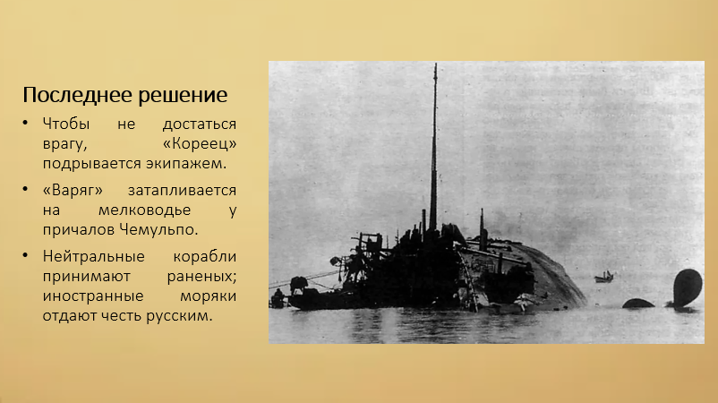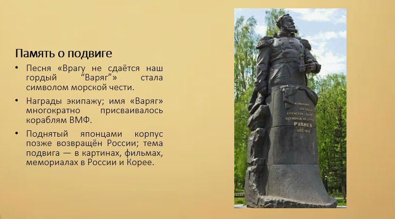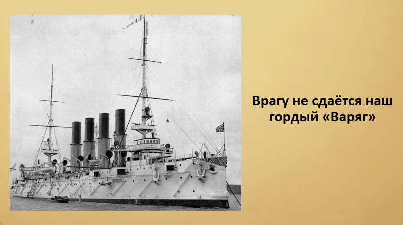 Добавить текст Вернуть оригинал6. Создайте электронную презентацию на тему «Врагу не сдается наш гордый «Варяг»». Отразите в ней подвиг экипажа крейсера.