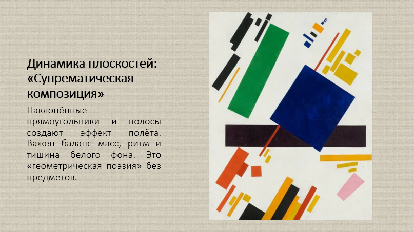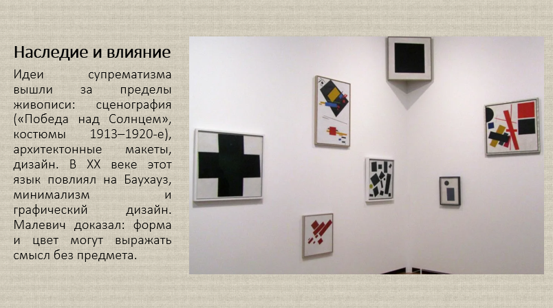 Добавить текст Вернуть оригиналРусский авангард в живописи (В. Кандинский, К. Малевич). Аргументация: Это достижение стало фундаментом для нового направления в мировом искусстве – абстракционизма, продемонстрировав беспрецедентный отказ от предметности.