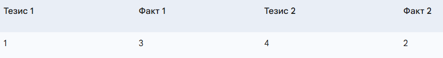 6. Прочитайте четыре предложения. Два из них являются тезисами (положениями, которые требуют аргументировать). Другие два содержат факты, которые могут послужить для аргументации этих тезисов. Подберите для каждого из тезисов соответствующий ему факт. Номера соответствующих предложений запишите в таблицу.