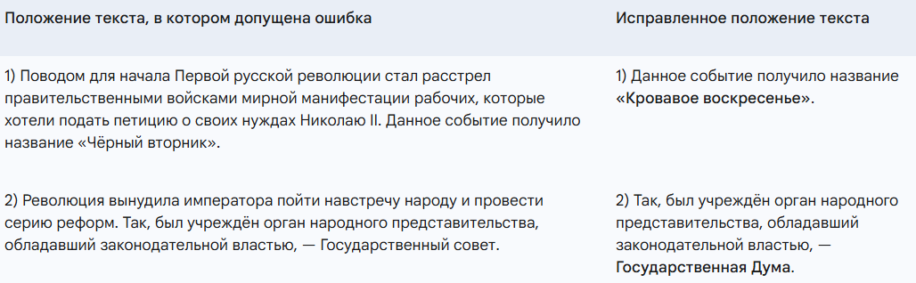 Добавить текст Вернуть оригинал19. Прочитайте текст, который содержит две фактические ошибки. Найдите фактические ошибки и исправьте их. Ответ оформите следующим образом (обязательно заполните обе колонки таблицы).