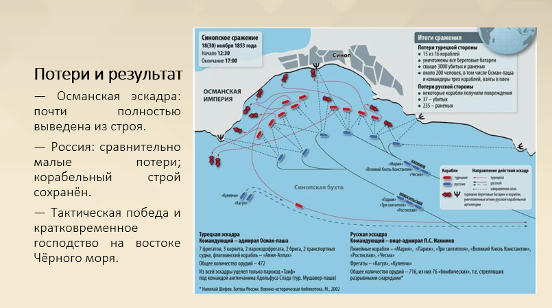 2. Используя дополнительные источники, подготовьте сообщение с презентацией о Синопском сражении.
