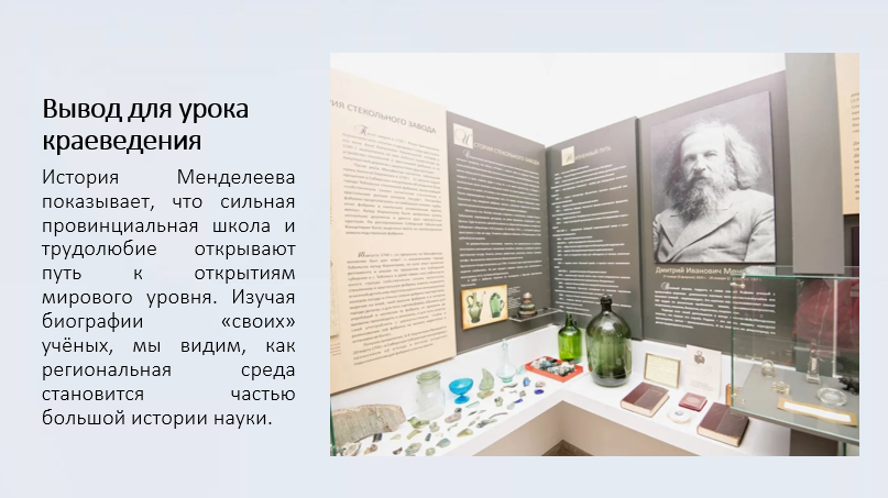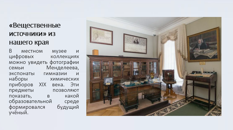 6. Подготовьте презентацию об одном из известных русских учёных второй половины XIX в., родившихся в вашем крае, городе или связанных с вашим регионом. Найдите в местном музее (или в Интернете) вещественные исторические источники, рассказывающие об этом времени. Подготовьте презентацию как демонстрационный материал к курсу «История родного края».