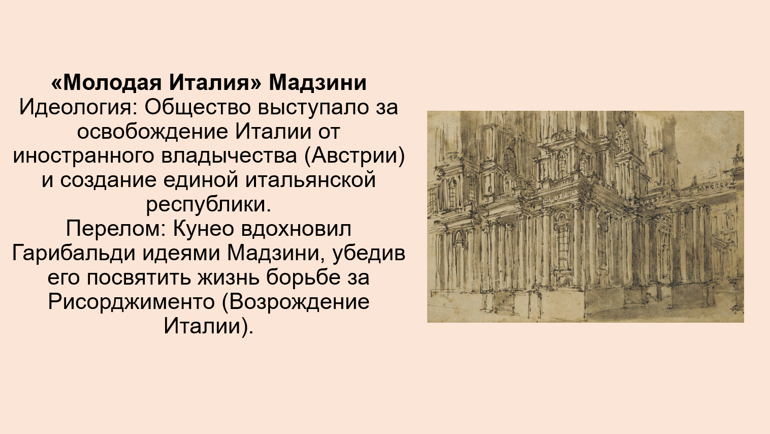 | Слои опоры | Буржуазия (либералы), студенчество, интеллигенция, часть рабочих. | Патриоты (Мадзинисты, карбонарии), либеральная буржуазия, Пьемонт (как главный союзник). |