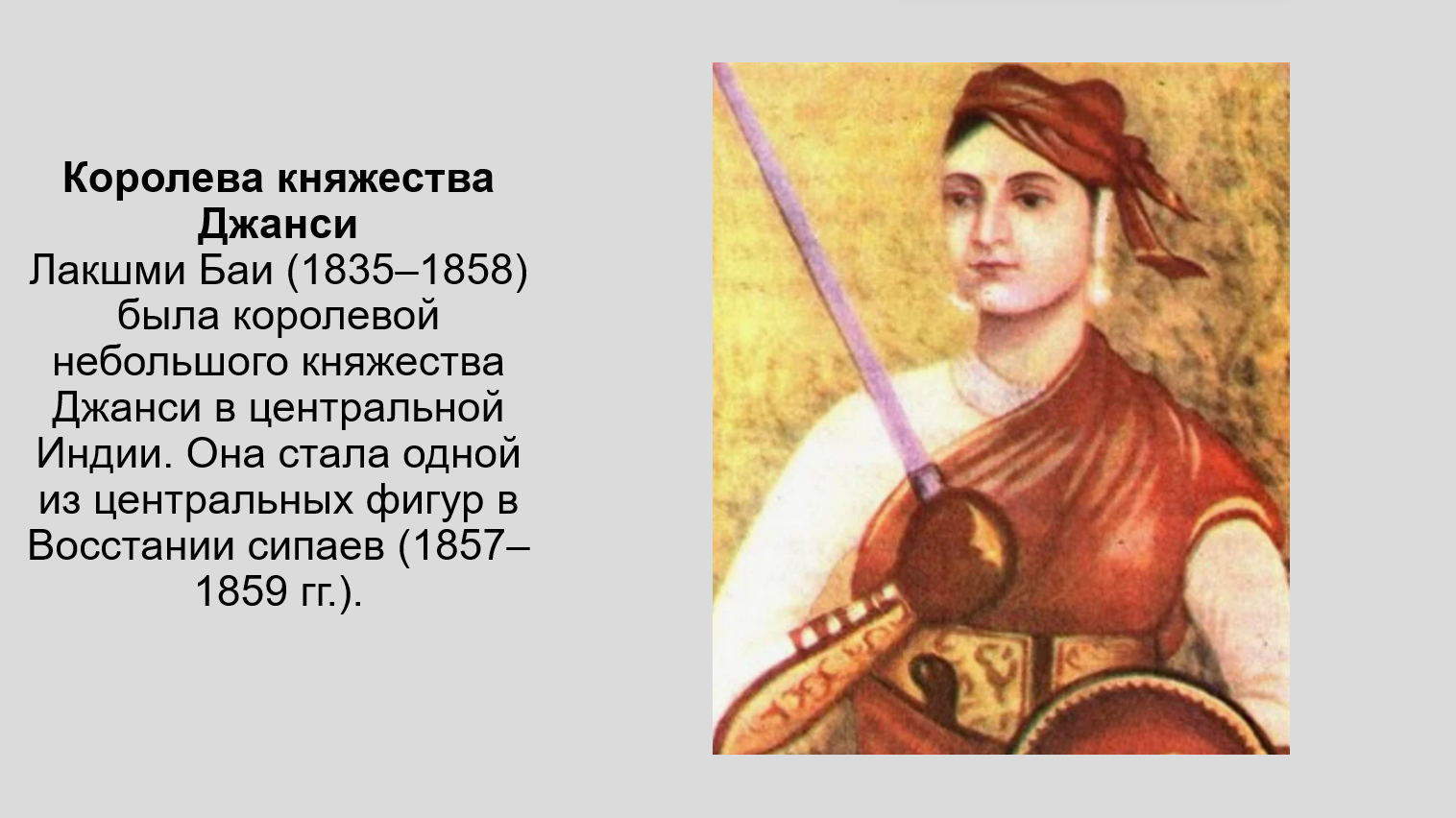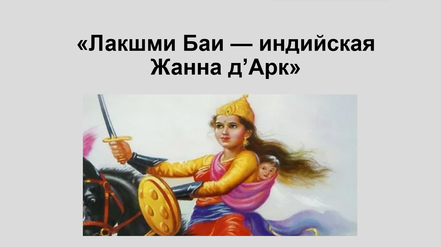 8. Подготовьте презентацию на тему «Лакшми Баи — индийская Жанна д'Арк». Почему она стала народной героиней и одним из символов борьбы за независимость?