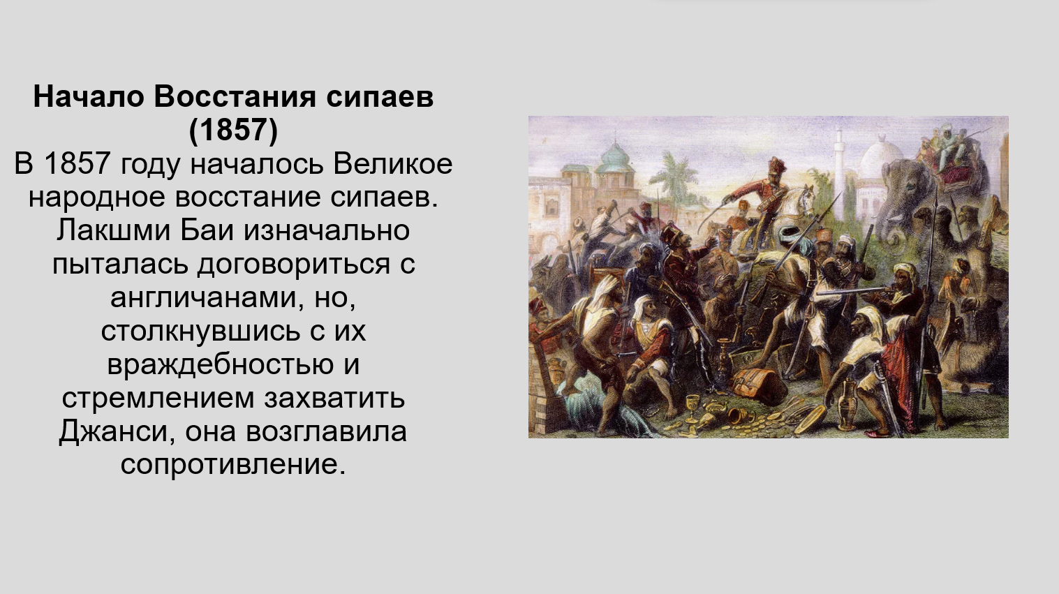 Добавить текст Озвучить Вернуть оригиналВосстание сипаев (1857–1859 гг.)