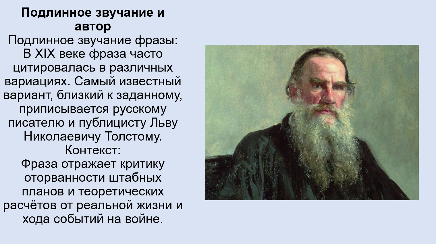 Добавить текст Вернуть оригинал5. Прочитайте крылатое выражение: «Гладко было на бумаге, да забыли про овраги, а по ним ходить». С помощью дополнительных источников информации, узнайте подлинную фразу, определите её автора и событие, с описанием которого она связана. Как судьба автора строк связана с одним из изложенных в параграфе исторических событий? Результат оформите в виде презентации. Обсудите ее с одноклассниками.