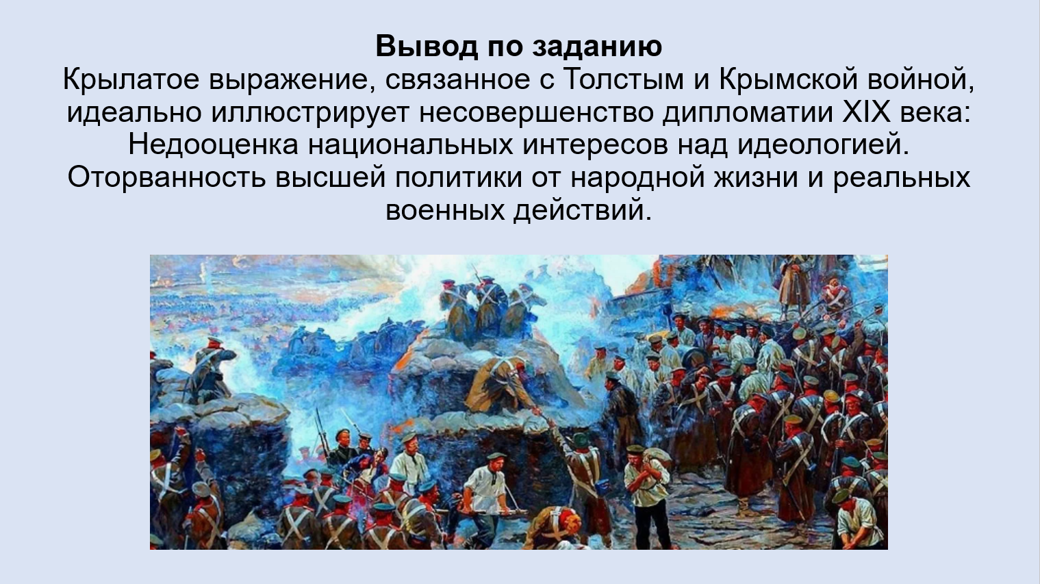 Добавить текст Вернуть оригиналСтолкновение интересов России (защита православных) с Турцией (и её союзниками — Англией, Францией, Сардинией). Итоги Крымской войны: