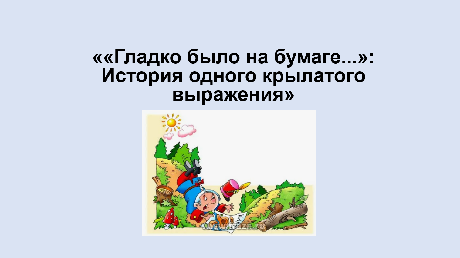 Добавить текст Озвучить Вернуть оригинал5. Прочитайте крылатое выражение: «Гладко было на бумаге, да забыли про овраги, а по ним ходить». С помощью дополнительных источников информации, узнайте подлинную фразу, определите её автора и событие, с описанием которого она связана. Как судьба автора строк связана с одним из изложенных в параграфе исторических событий? Результат оформите в виде презентации. Обсудите ее с одноклассниками.