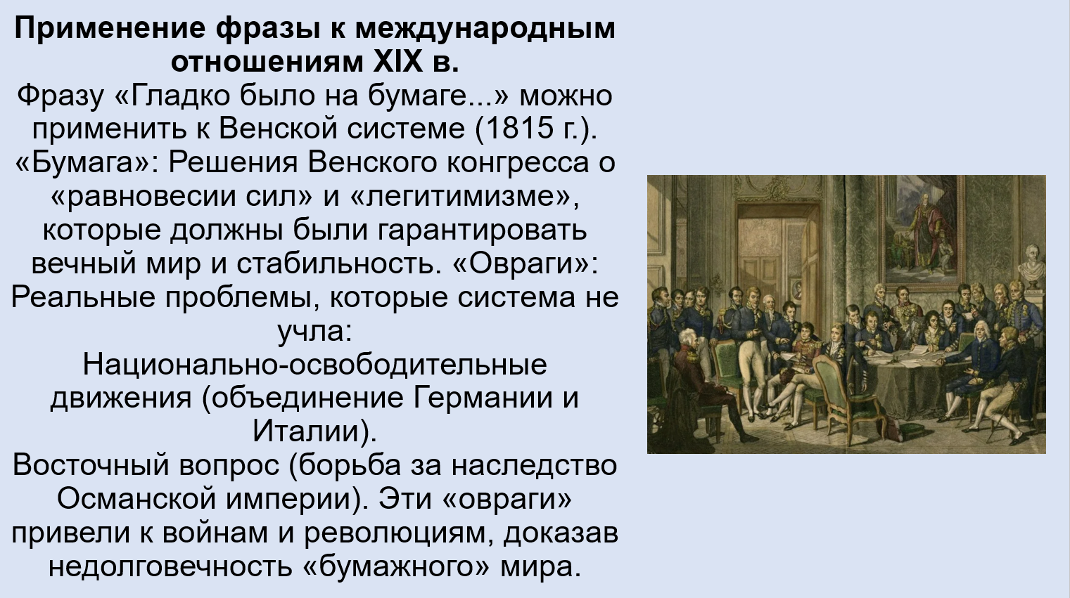 Главный вопрос главы: «Почему мир в Европе, установленный Венской системой международных отношений, оказался недолгим?» (согласно логике параграфов 7).