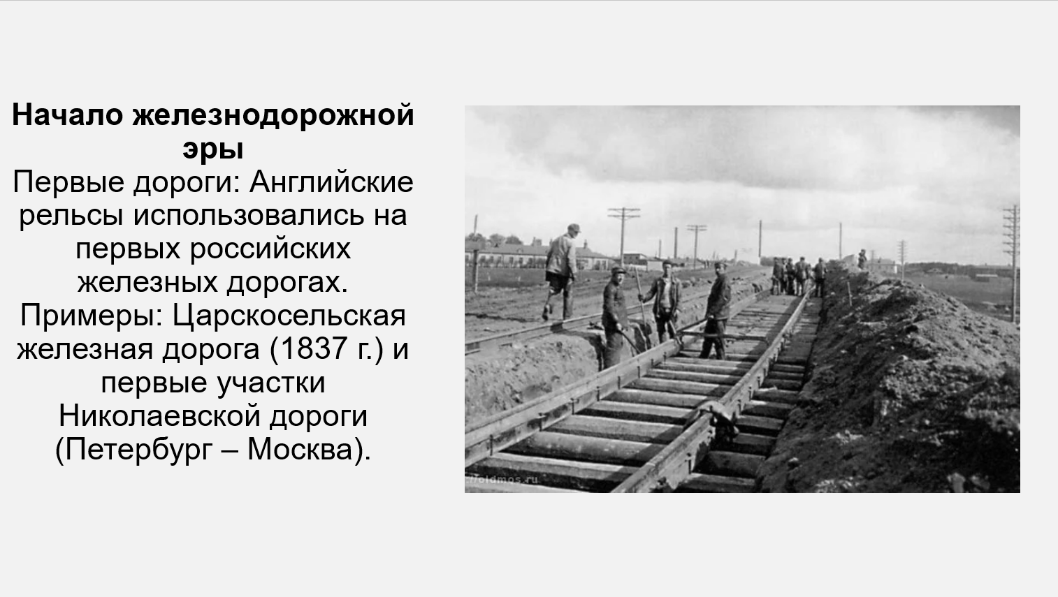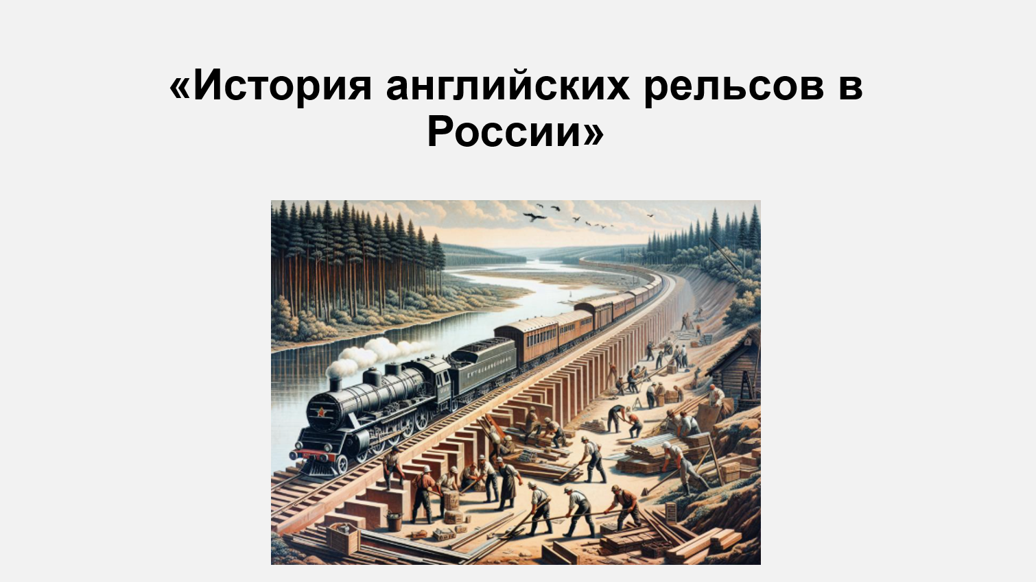 Добавить текст Озвучить Вернуть оригинал4. Используя дополнительные источники информации, подготовьте презентацию на тему «История английских рельсов в России». Выясните, на каких дорогах и как долго они использовались. Когда произошёл отказ от английских рельсов и о чём он свидетельствует? Перечислите источники, которые были вами использованы в процессе работы.