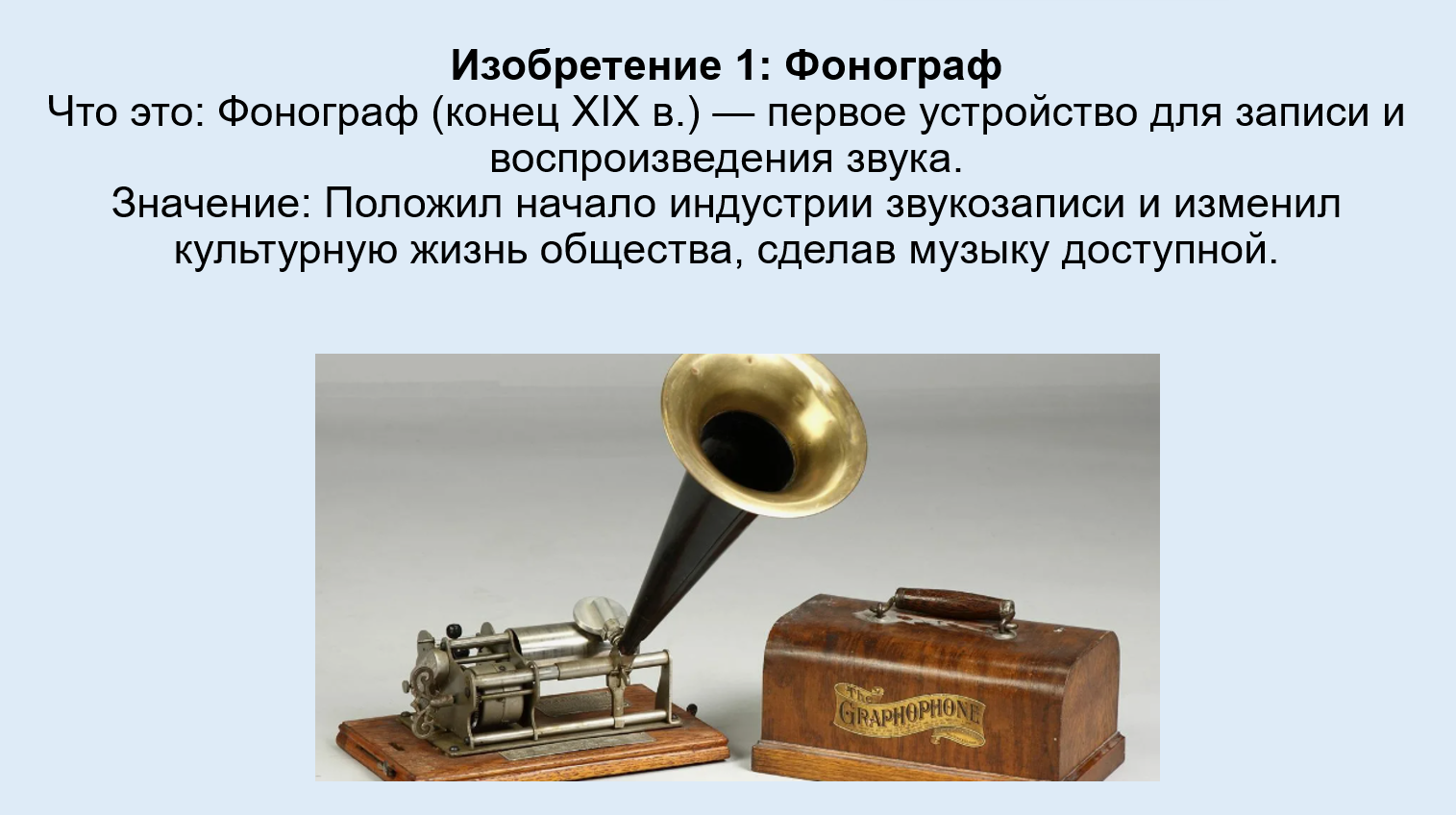 4. Используя дополнительные источники информации, подготовьте презентацию об изобретениях Т. Эдисона.