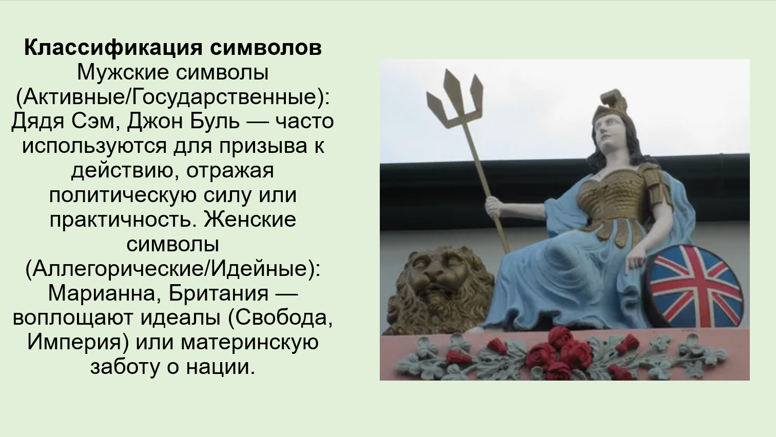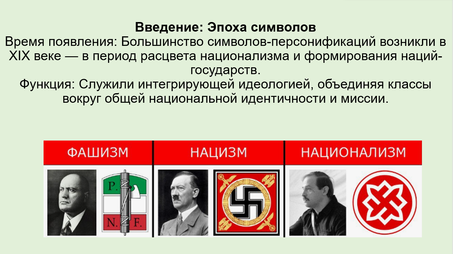 Введение Символы наций — это образы, возникшие преимущественно в XIX веке в эпоху расцвета национализма, которые воплощают особенности национального характера или исторической миссии народа.