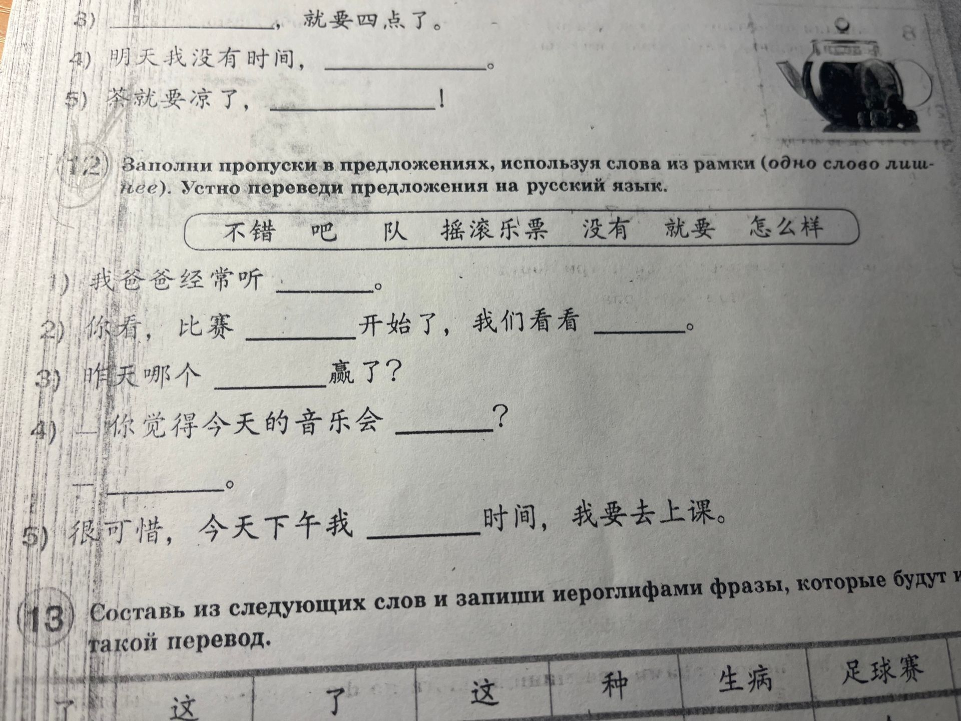5) Я выполняю задание по русскому языку. Необходимо заполнить пропуск в предложении, используя слова из рамки. Подходит слово «没有».