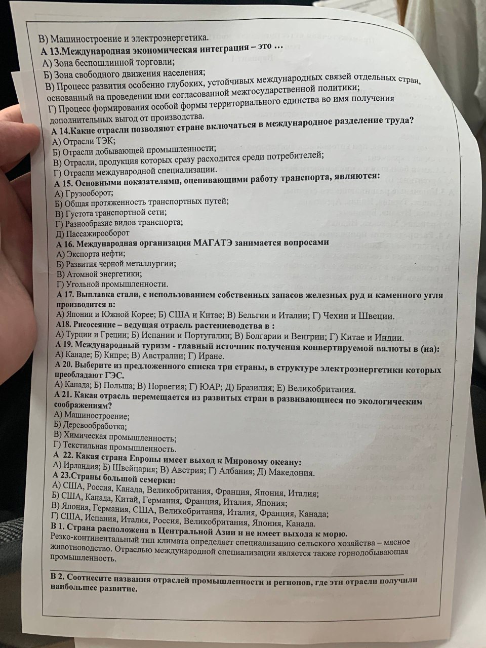 А 21. Какая отрасль перемещается из развитых стран в развивающиеся по экологическим соображениям?