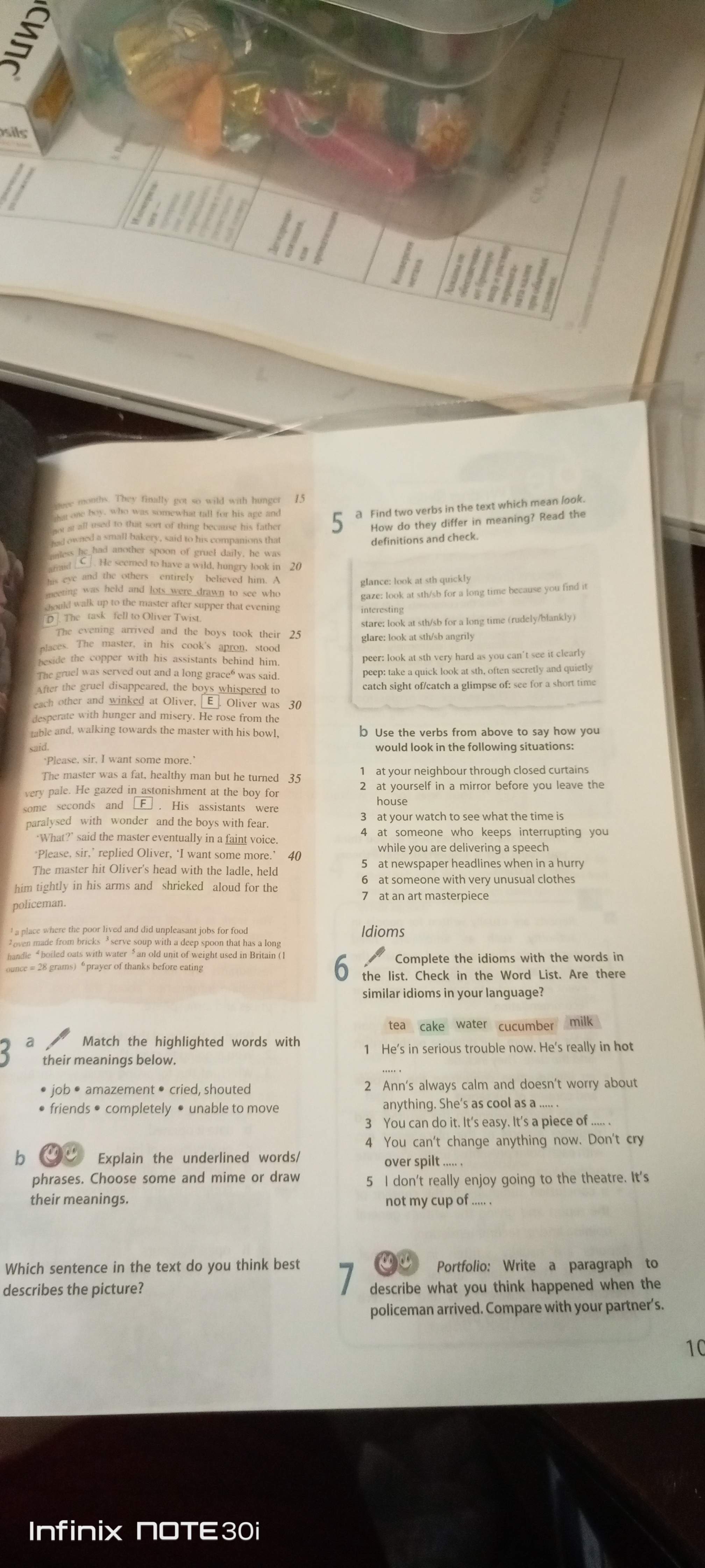 5.b Use the verbs from above to say how you would look in the following situations: