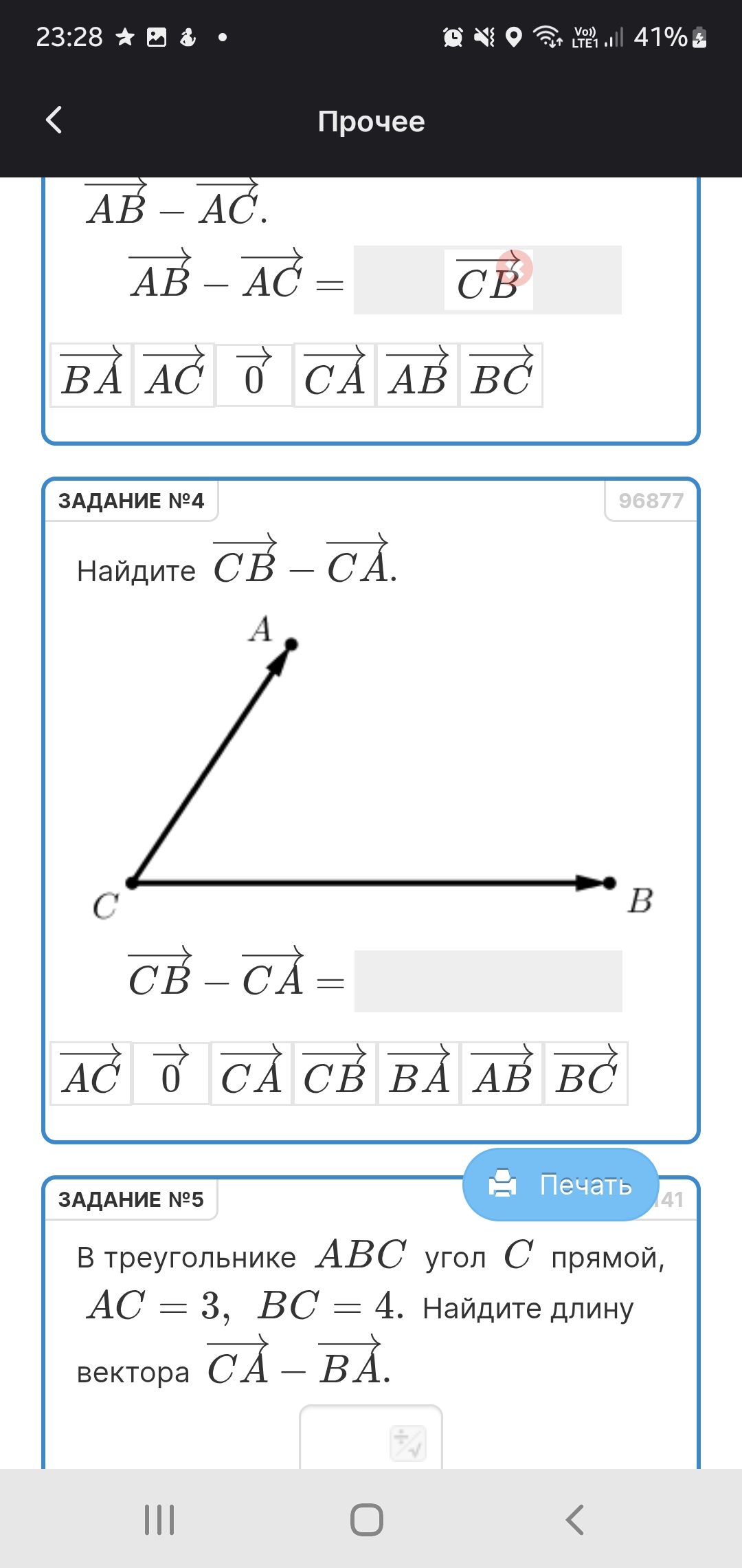 Найдите $\overrightarrow{CB} - \overrightarrow{CA}$