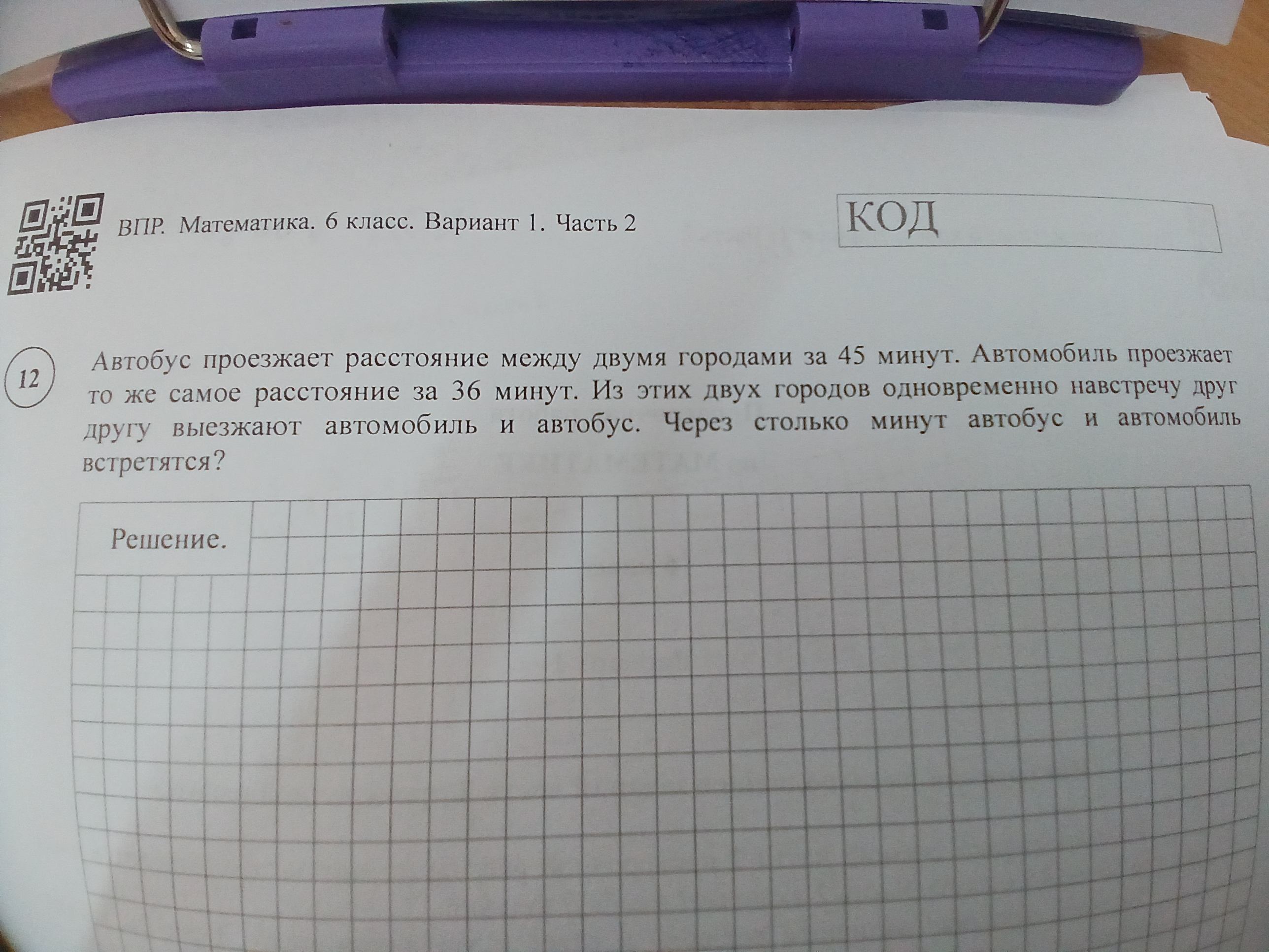 Контрольные задания > Автобус проезжает расстояние между двумя городами за 45 минут. Автомобиль проезжает то же самое расстояние за 36 минут. Из этих двух городов одновременно навстречу друг другу выезжают автомобиль и автобус. Через сколько минут автобус и автомобиль встретятся?