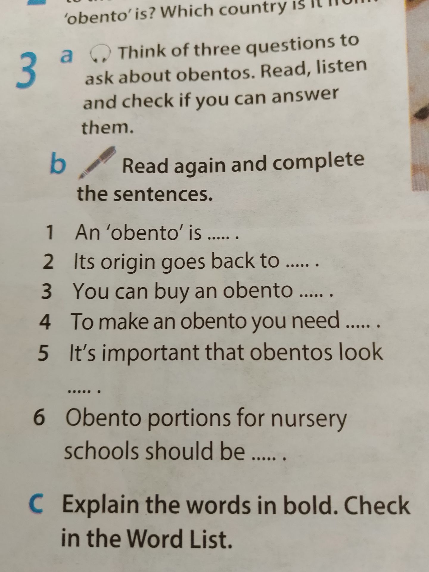3 a Think of three questions to ask about obentos. Read, listen and check if you can answer them.