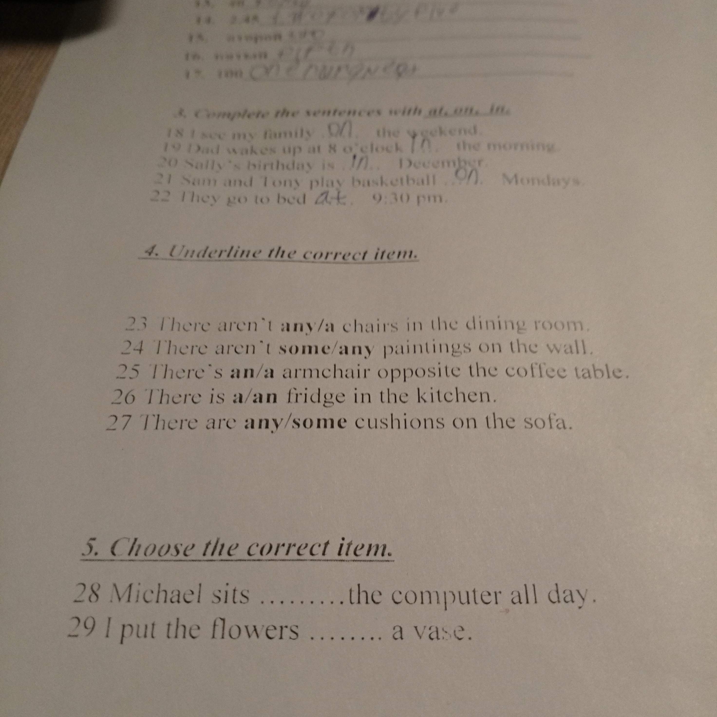 29 I put the flowers ... a vase.