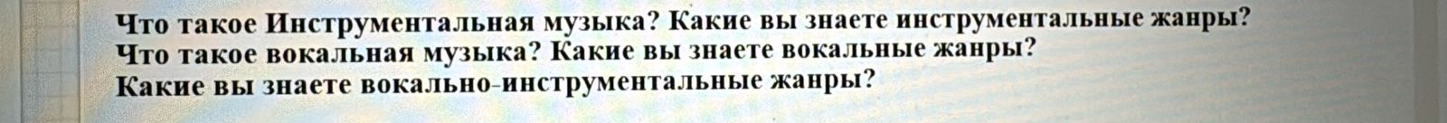 Контрольные задания > Что такое Инструментальная музыка? Какие вы знаете инструментальные жанры?