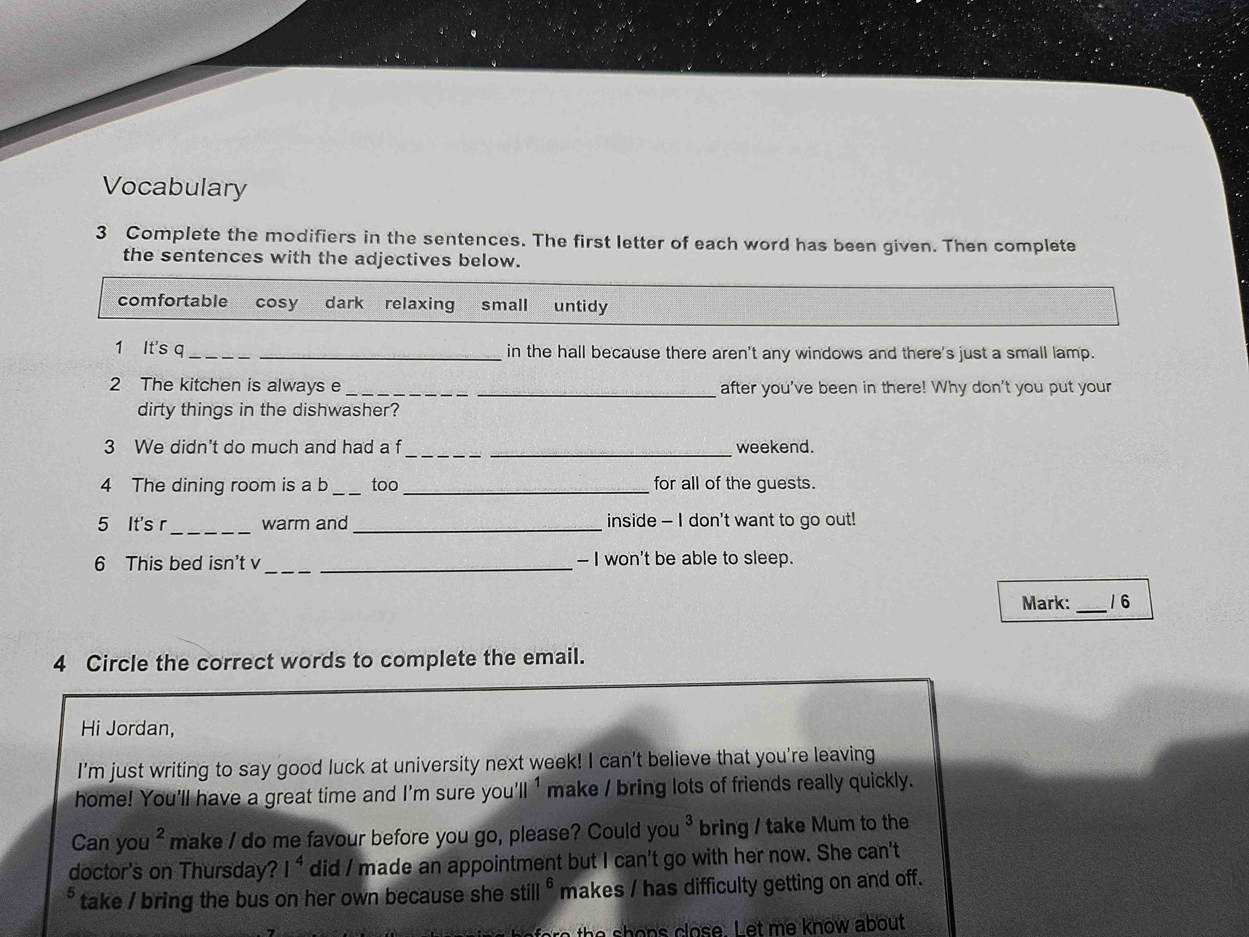 5 It's r_______ warm and _______ inside - I don't want to go out!