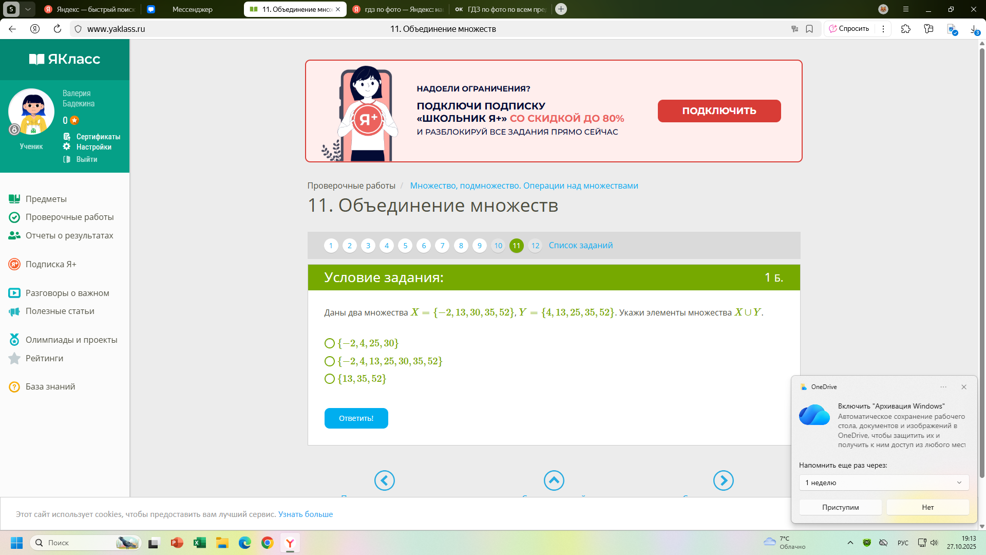 Объединение X∪Y будет содержать все уникальные элементы из обоих множеств: