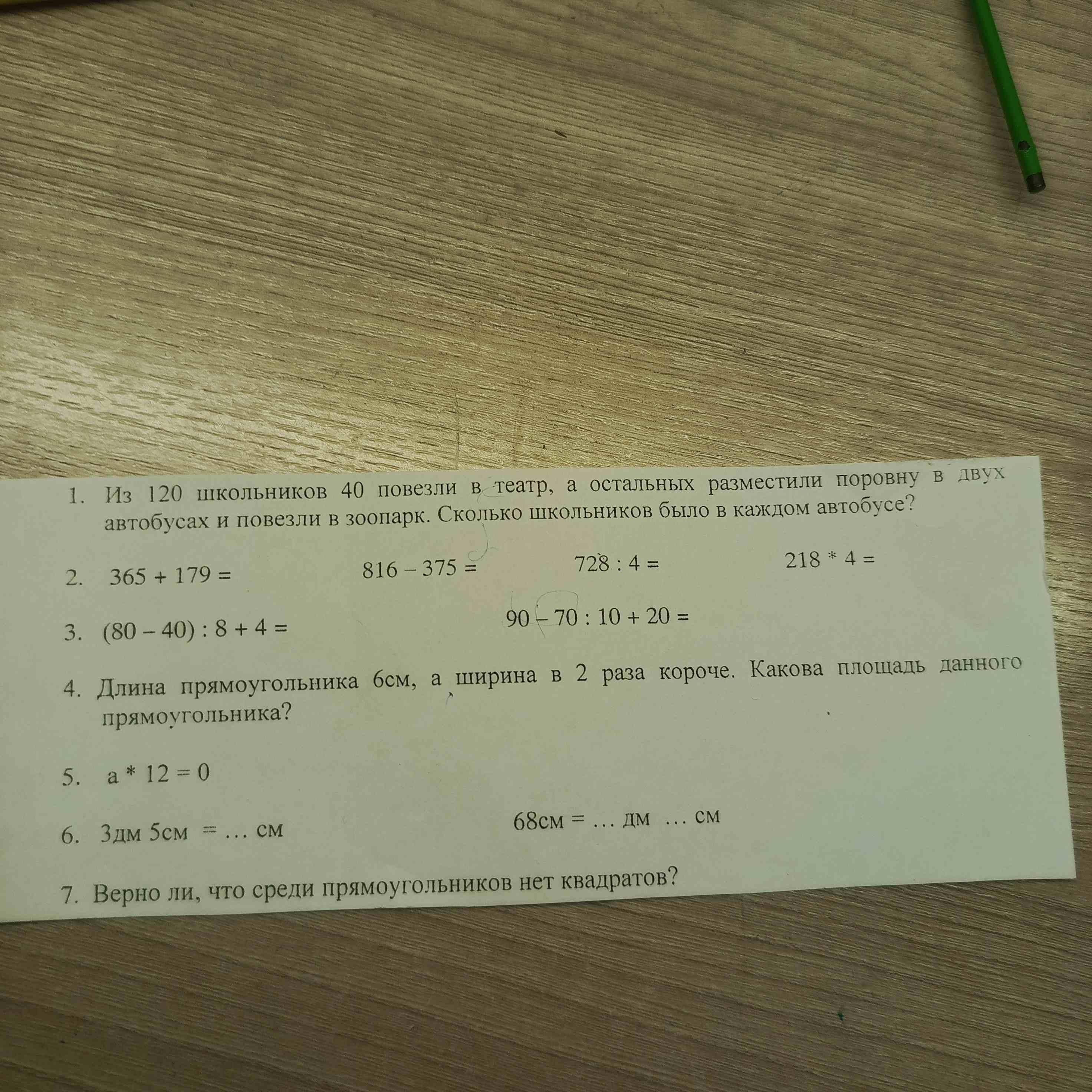 1. Из 120 школьников 40 повезли в театр, а остальных разместили поровну в двух автобусах и повезли в зоопарк. Сколько школьников было в каждом автобусе?