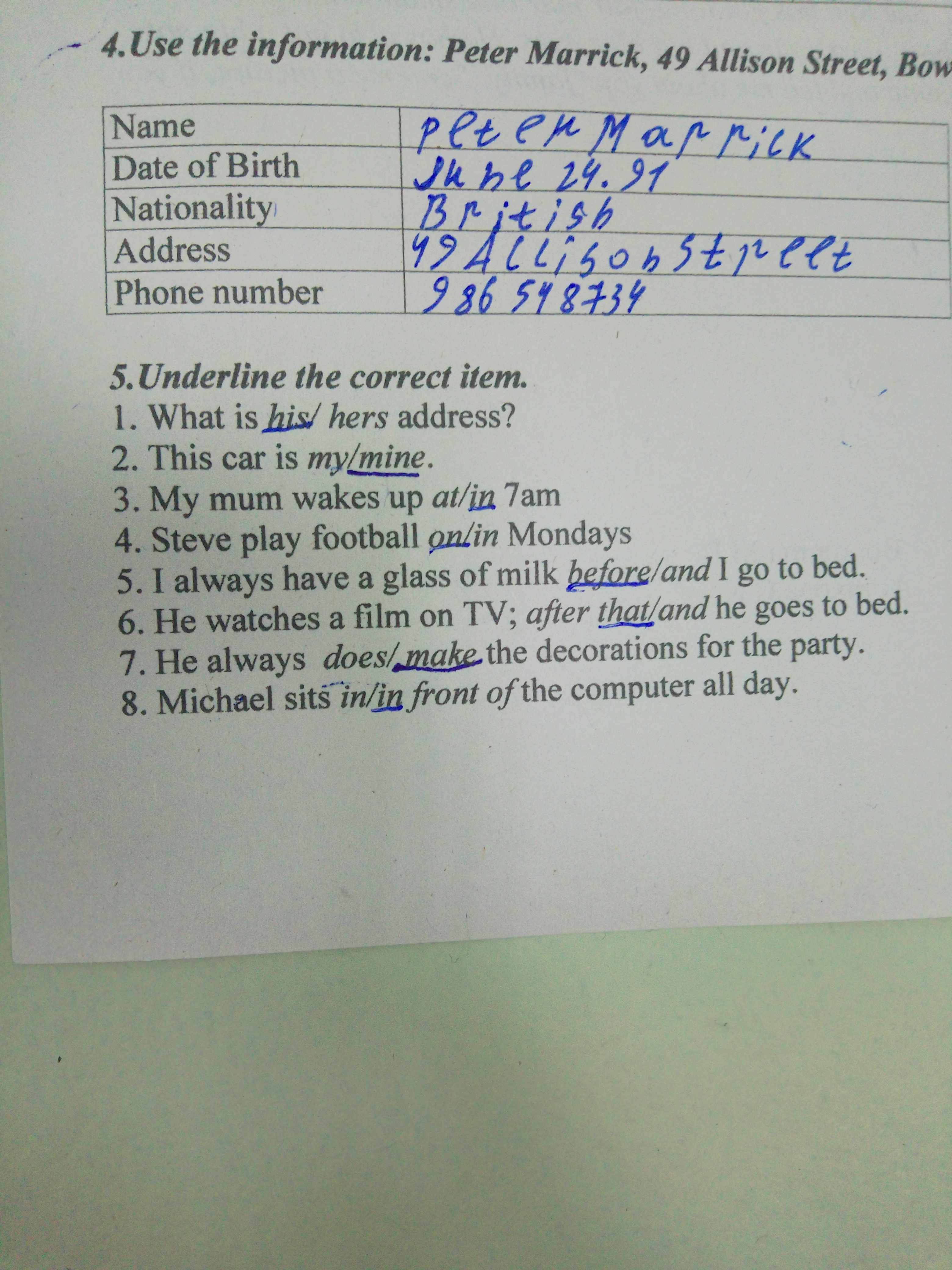 4. Use the information: Peter Marrick, 49 Allison Street, Bow