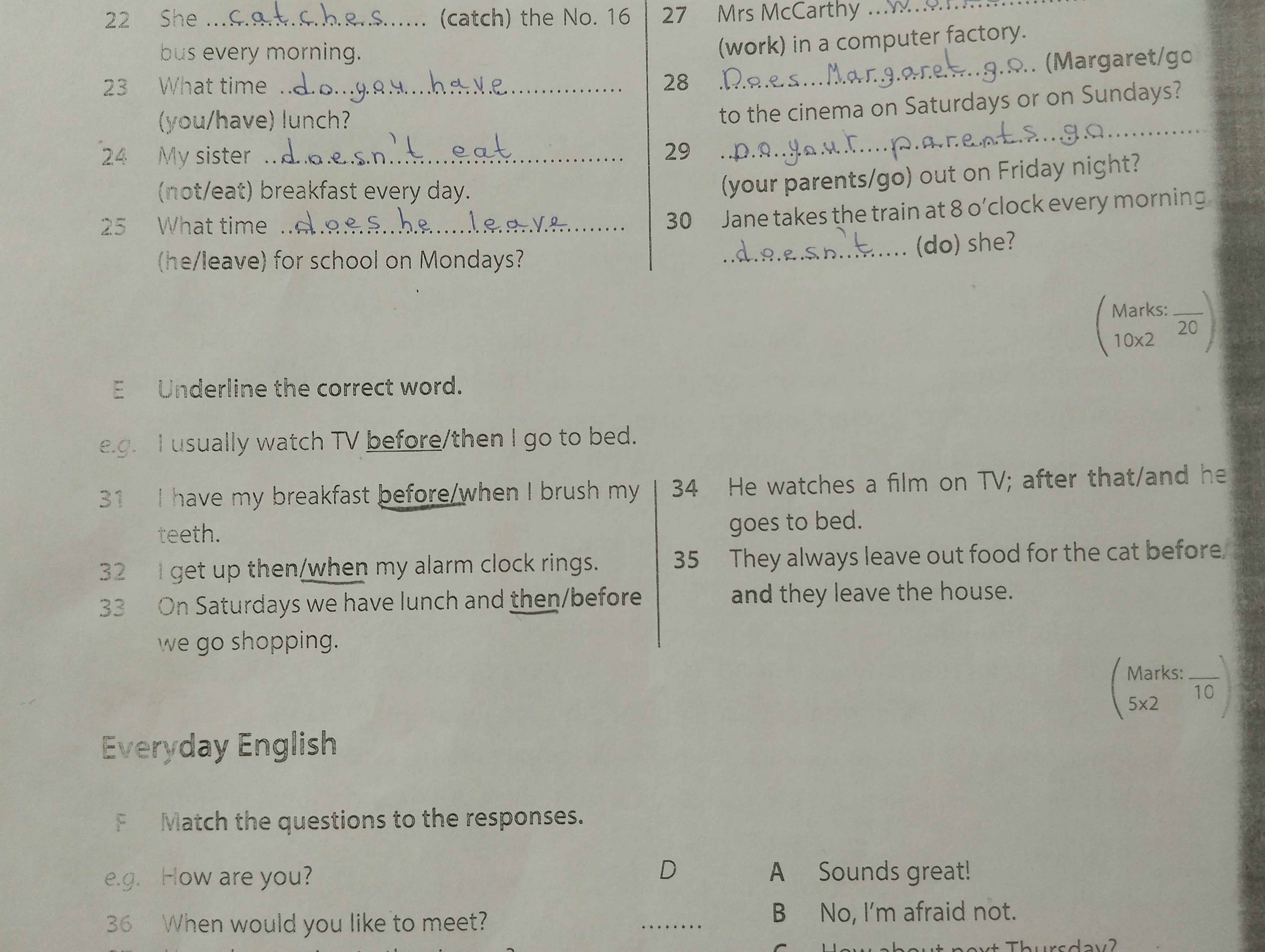 28 ....... (Margaret/go) to the cinema on Saturdays or on Sundays?