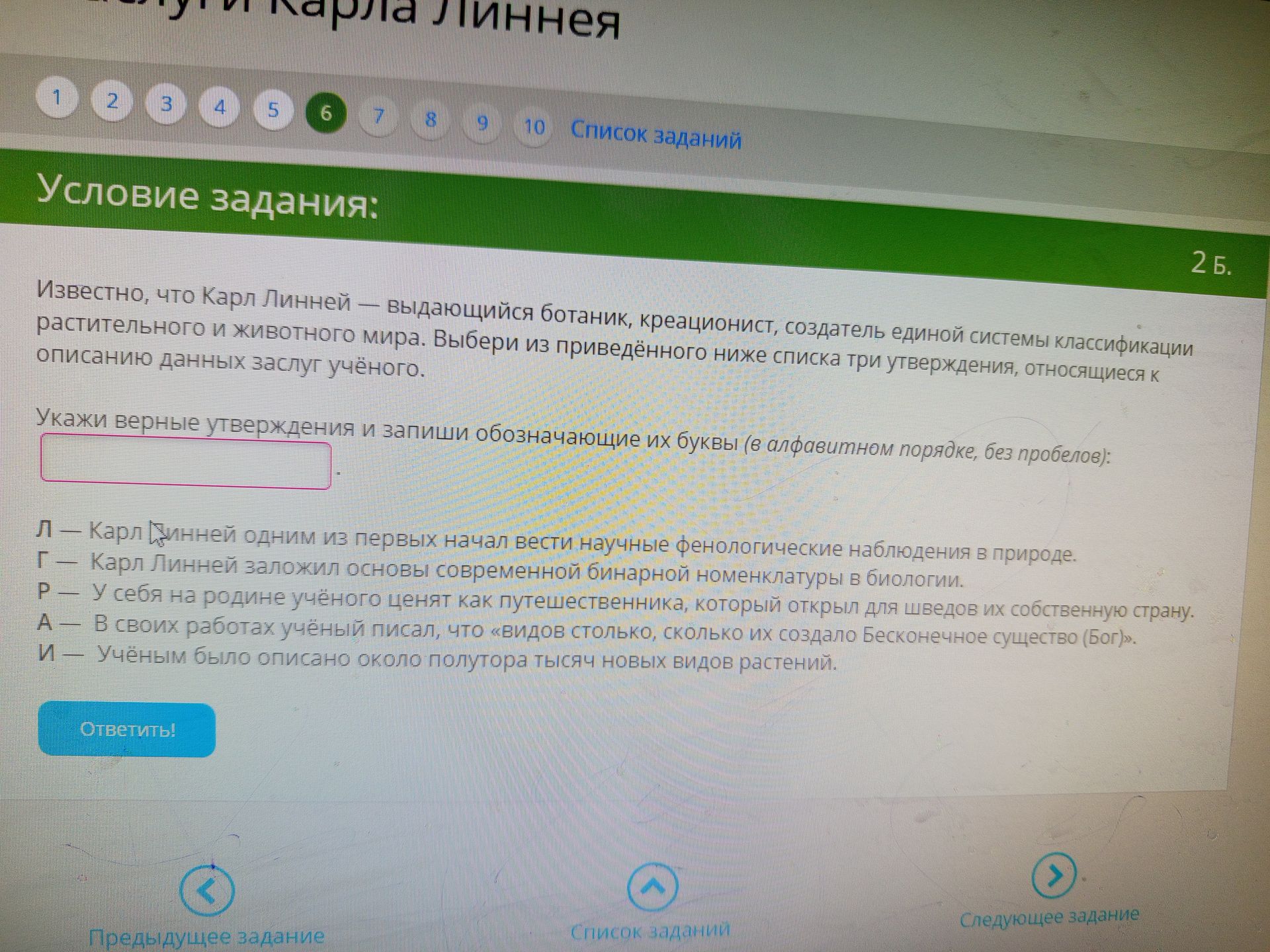 Для этого необходимо выбрать из списка три верных утверждения, относящиеся к заслугам учёного Карла Линнея.