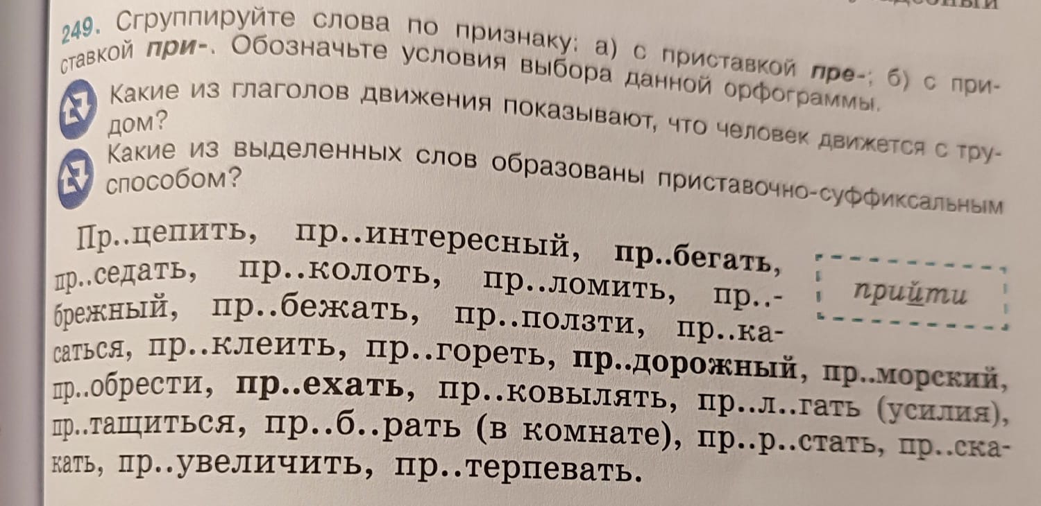Сгруппируйте слова по признаку: а) с приставкой пре-; б) с при-. Обозначьте условия выбора данной орфограммы.