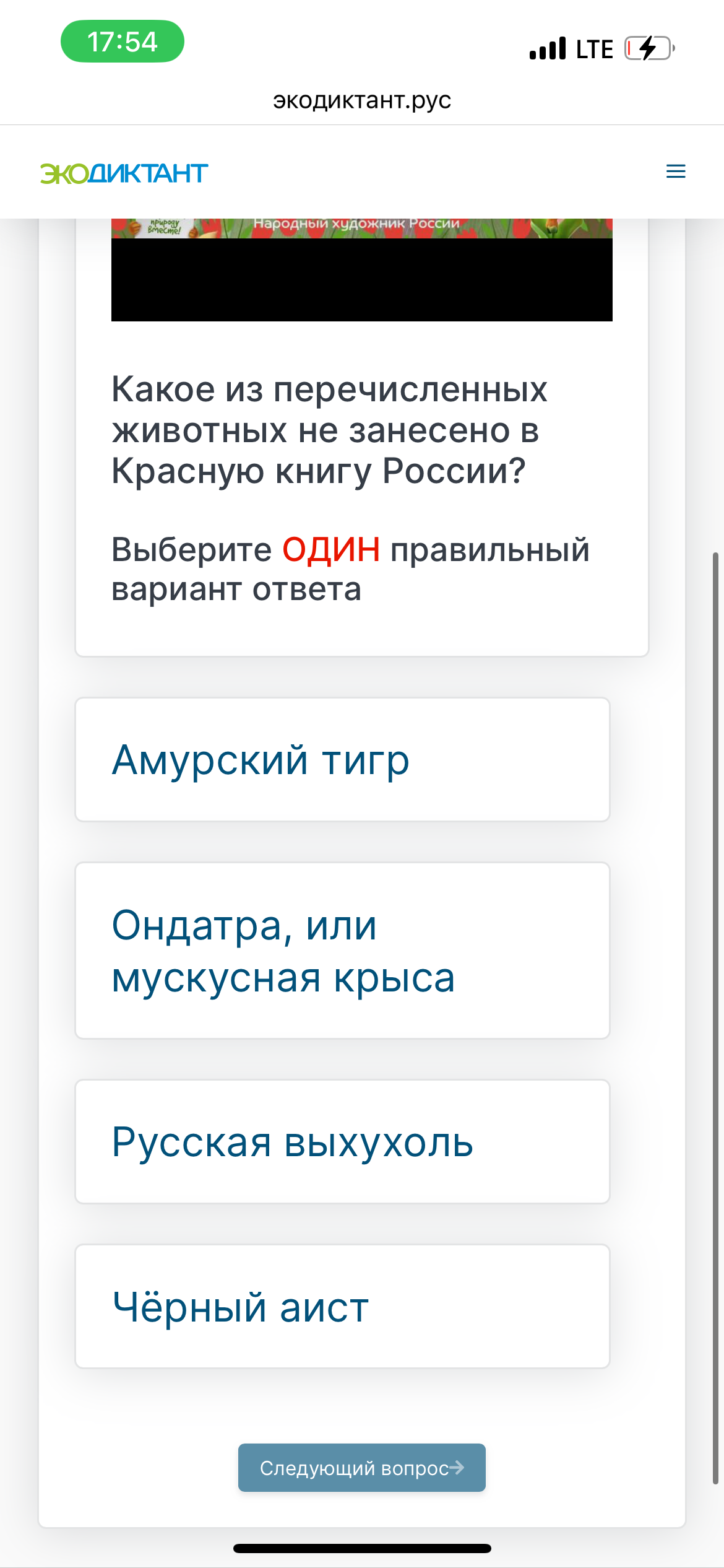 Контрольные задания > Какое из перечисленных животных не занесено в Красную книгу России?