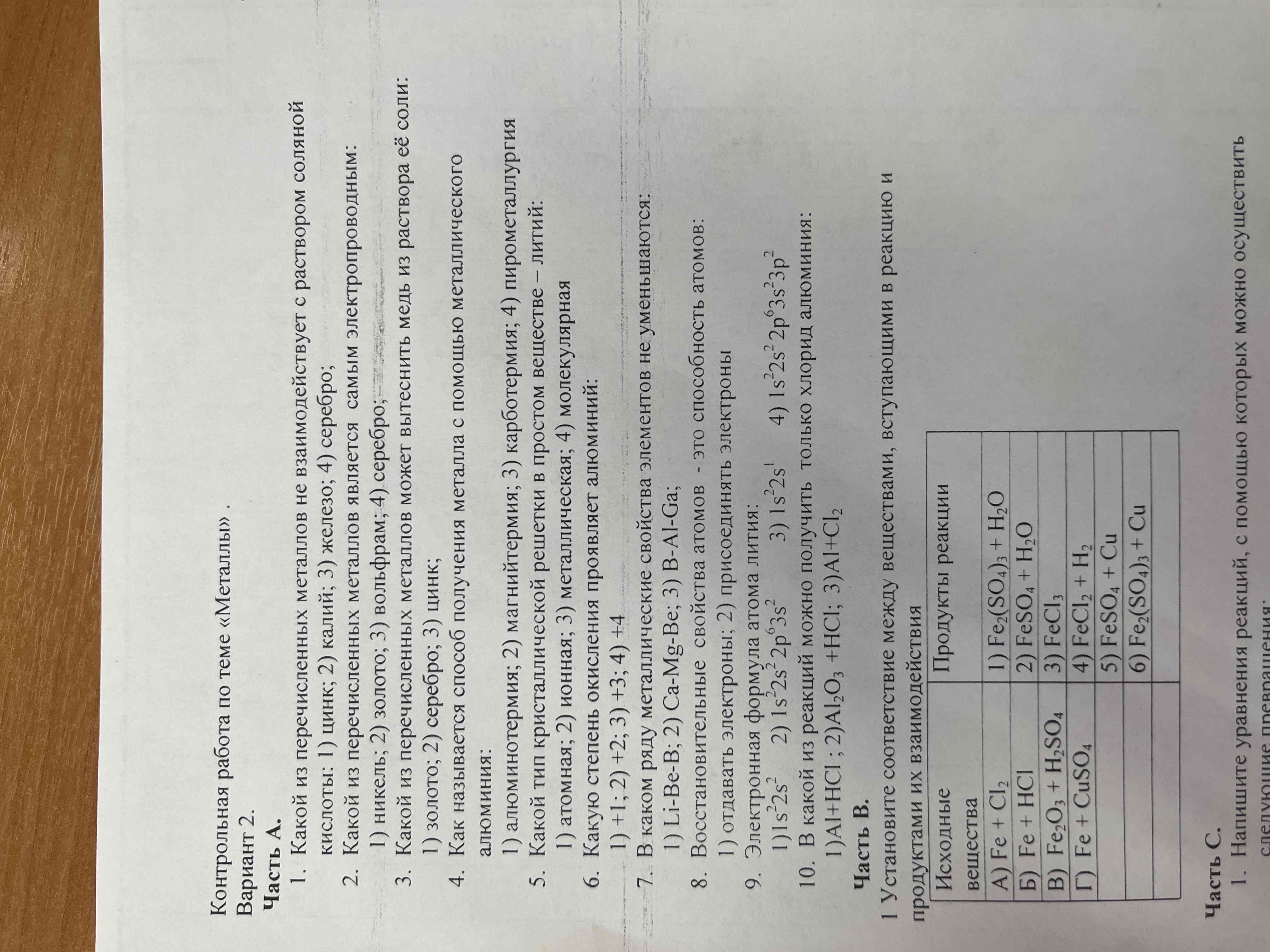 Часть В. 1 Установите соответствие между веществами, вступающими в реакцию и продуктами их взаимодействия