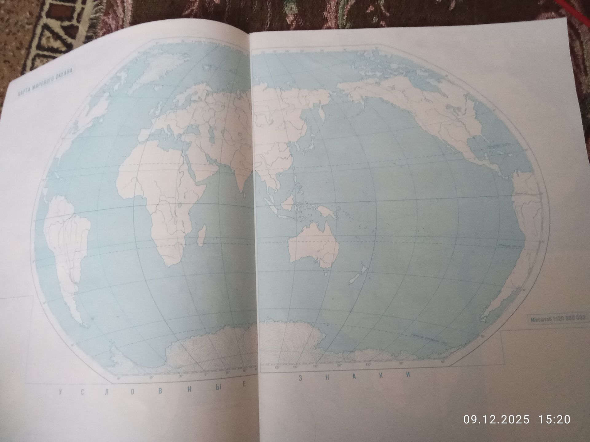 Ответ: Представлен фрагмент страницы атласа или учебника географии, содержащий карту мира, масштаб 1:120 000 000 и дату 09.12.2025.