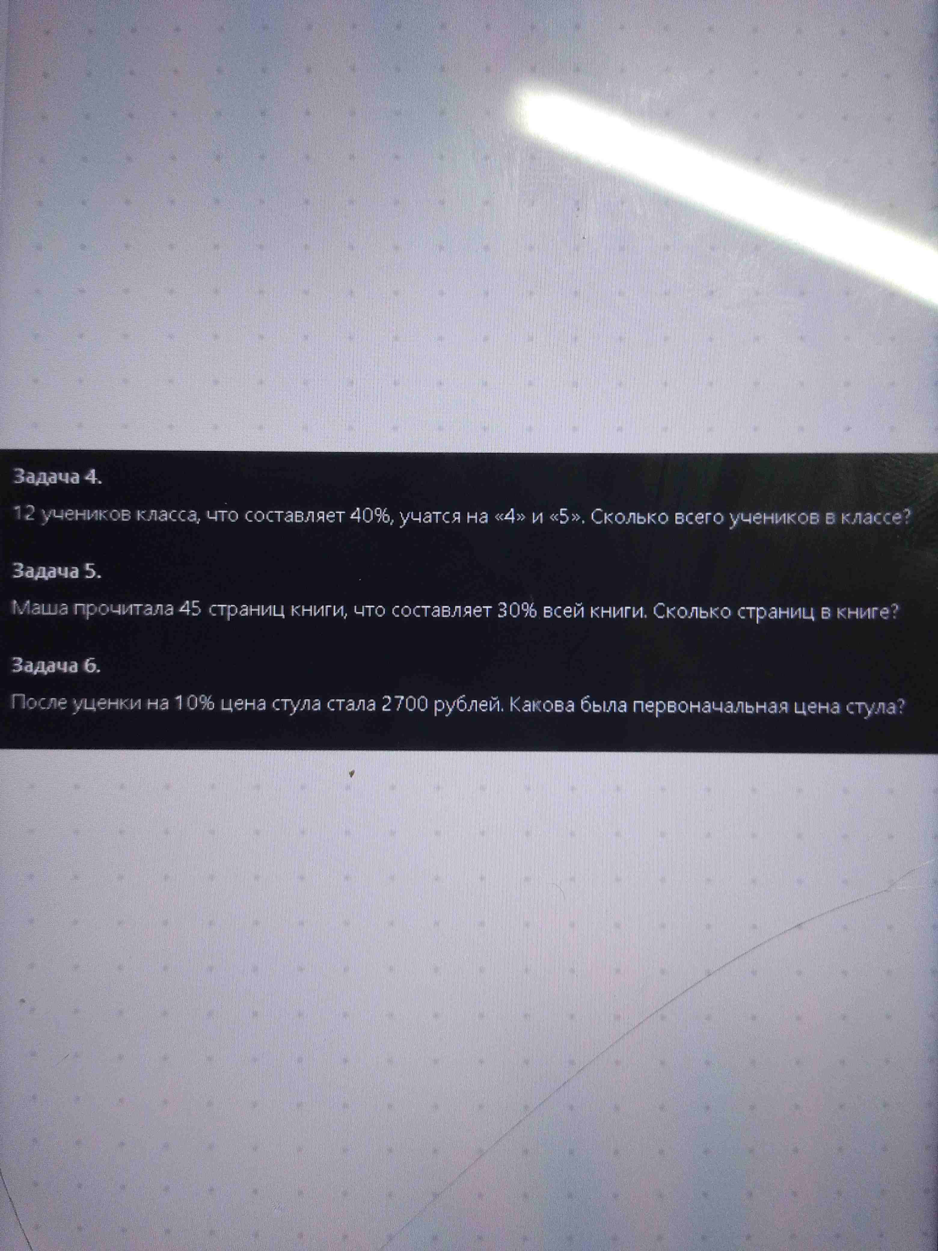 Чтобы найти общее количество страниц в книге, зная, что 45 страниц составляют 30%, можно использовать пропорцию.