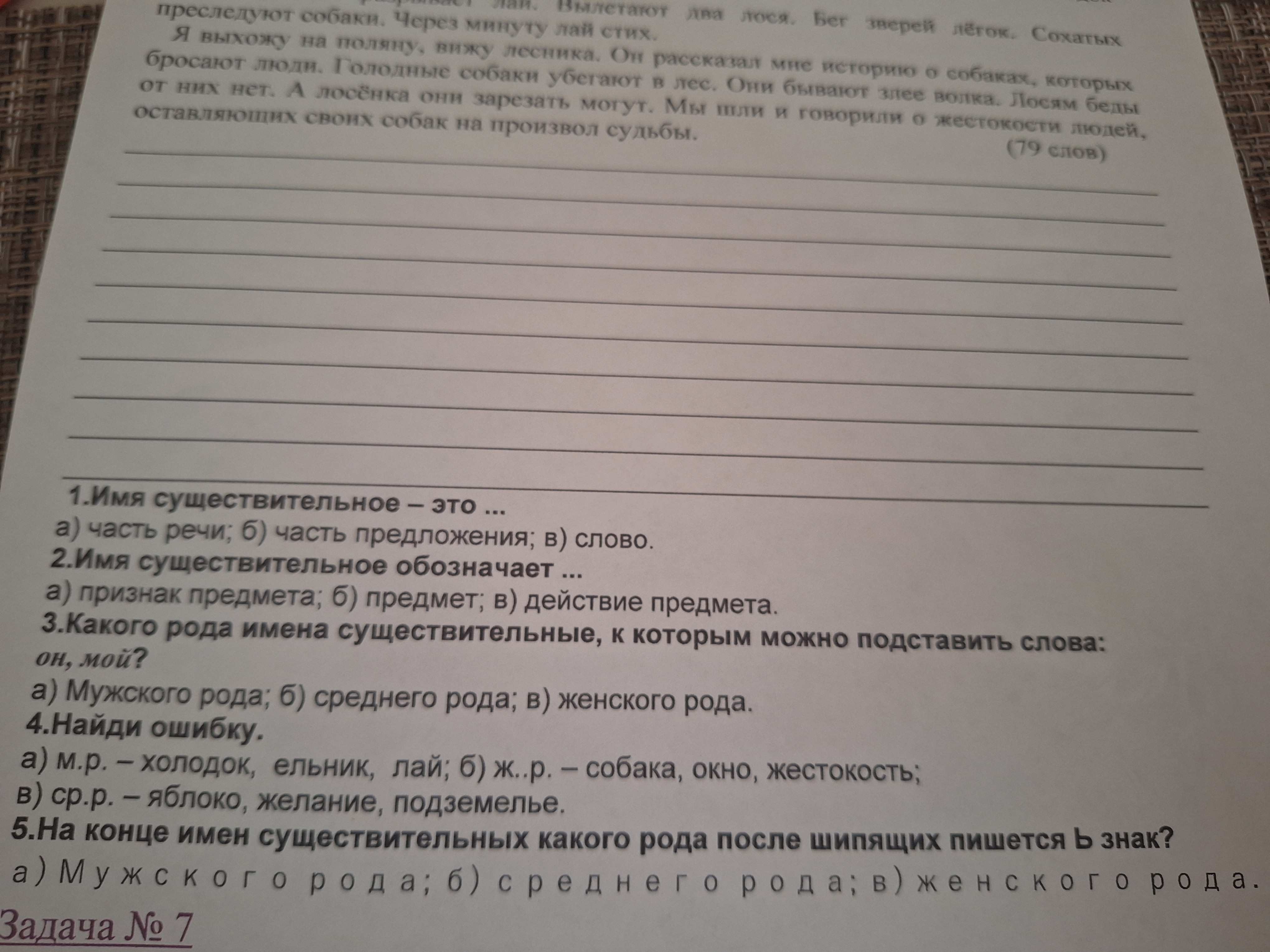 Контрольные задания > 5. На конце имен существительных какого рода после шипящих пишется Ь знак?