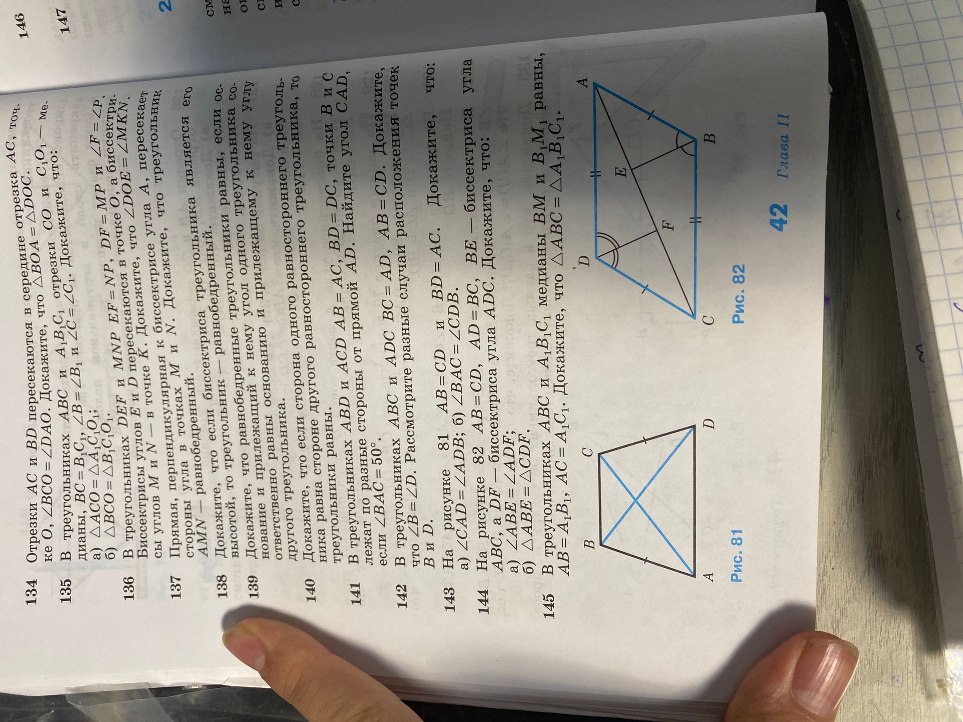 Следовательно, треугольник ABD = треугольнику CDA (по трем сторонам), значит, углы, лежащие против соответственных сторон, равны.