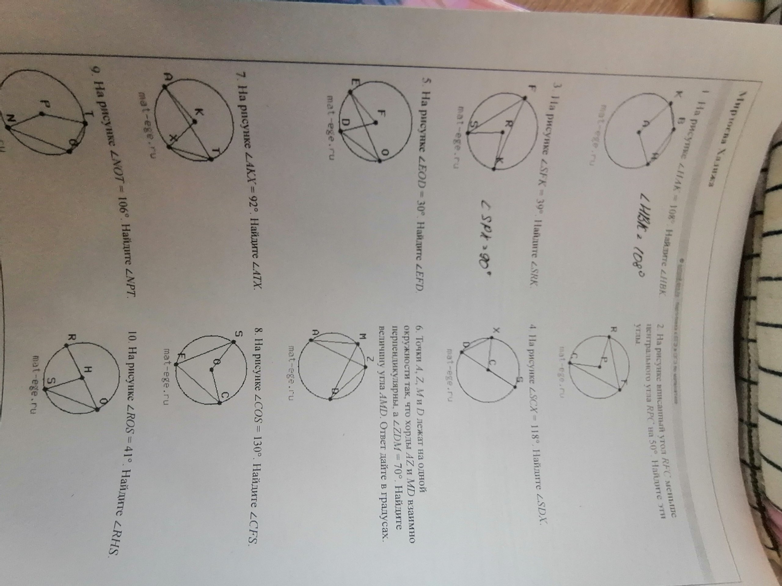 Вписанный угол \(\angle NPT\) опирается на дугу NT. Центральный угол, опирающийся на эту же дугу, равен \(\angle NOT = 106^\circ\).