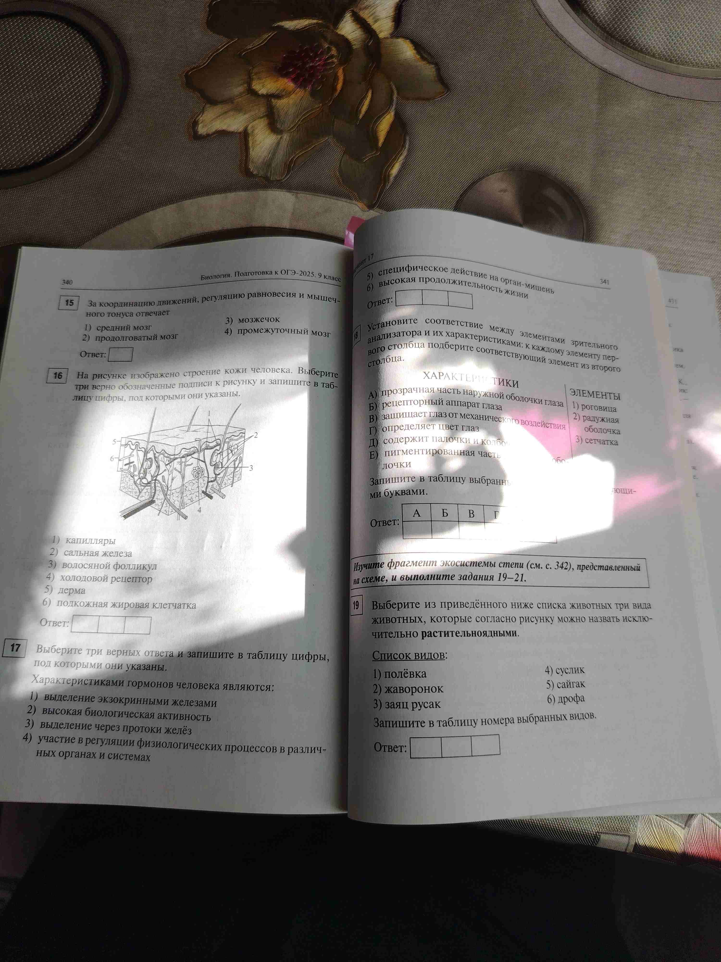 16. На рисунке изображено строение кожи человека. Выберите три верно обозначенные подписи к рисунку и запишите в таблицу цифры, под которыми они указаны.