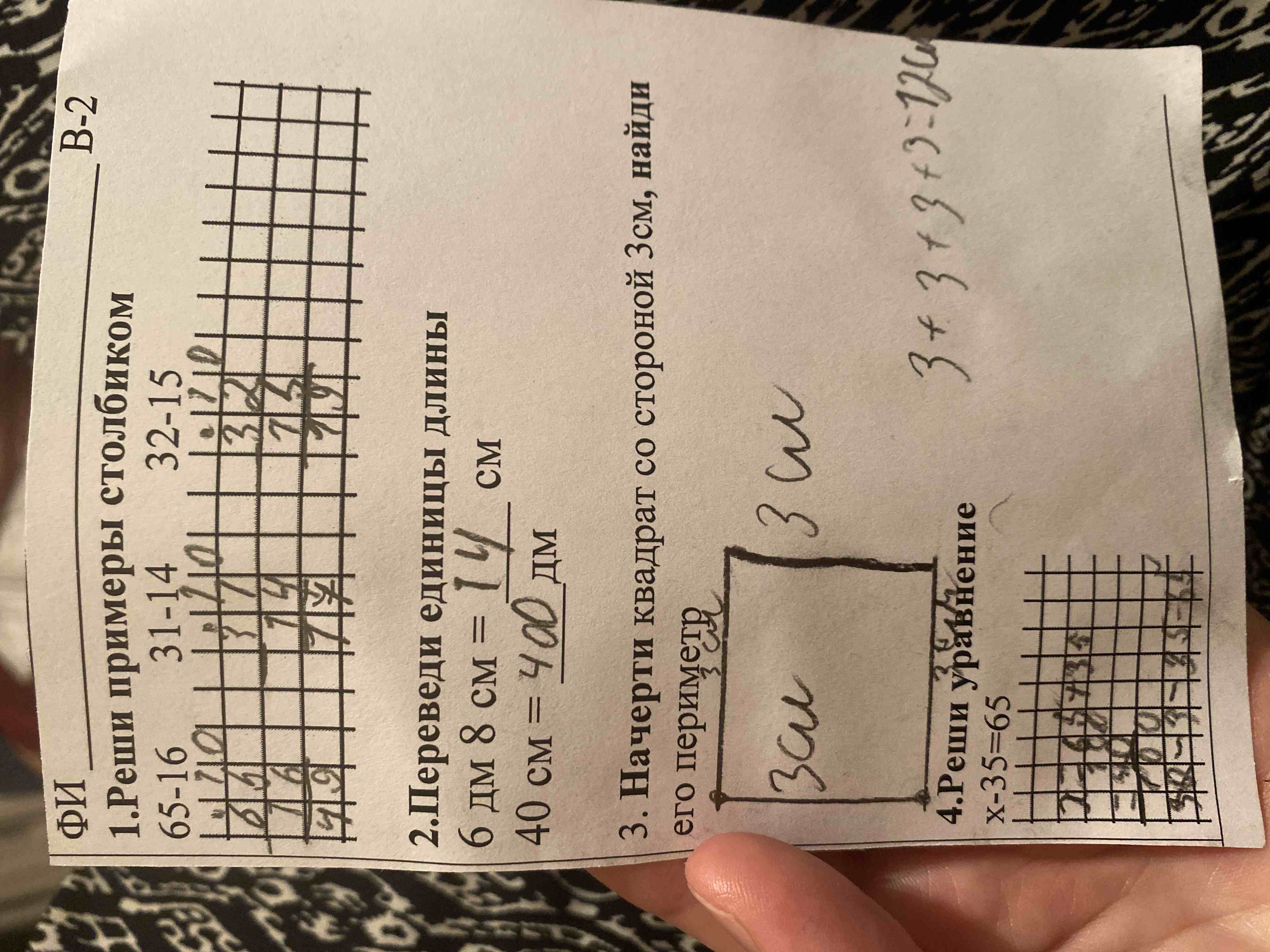 Начерти квадрат со стороной 3 см, найди его периметр.