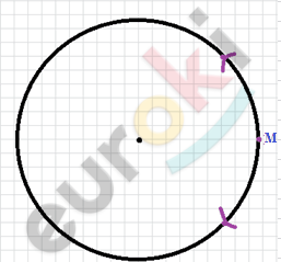 Контрольные задания > Начертите окружность, диаметр которой равен 5 см. Отметьте на окружности точку М. Найдите на окружности точки, удалённые от точки М на 2 см.