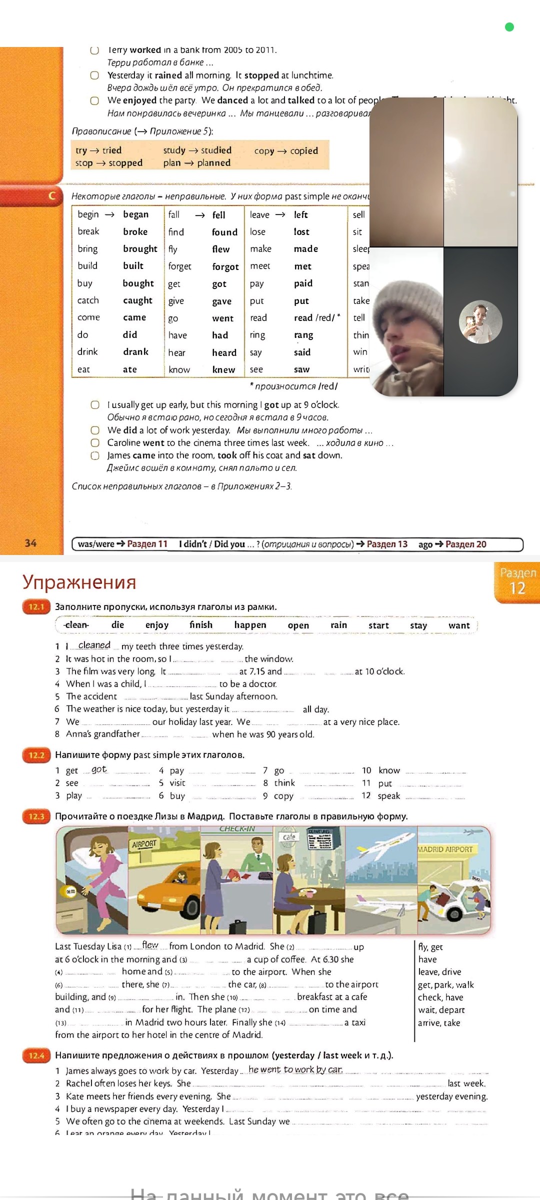 12.4 Напишите предложения о действиях в прошлом (yesterday / last week и т. д.).