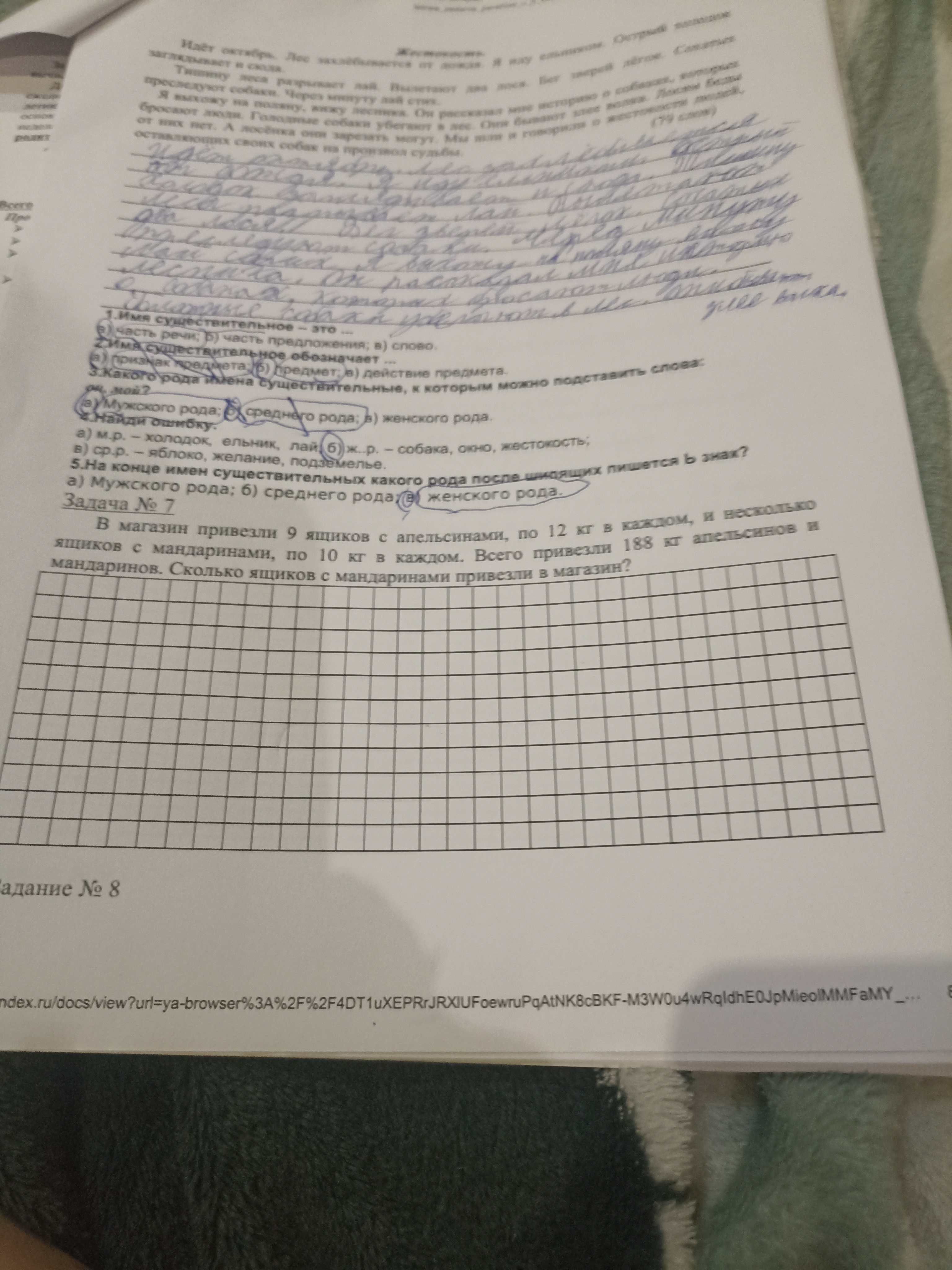 4. Найди ошибку. a) м.р. – холодок, ельник, лай; б) ж.р. – собака, окно, жестокость; в) ср.р. – яблоко, желание, подземелье.