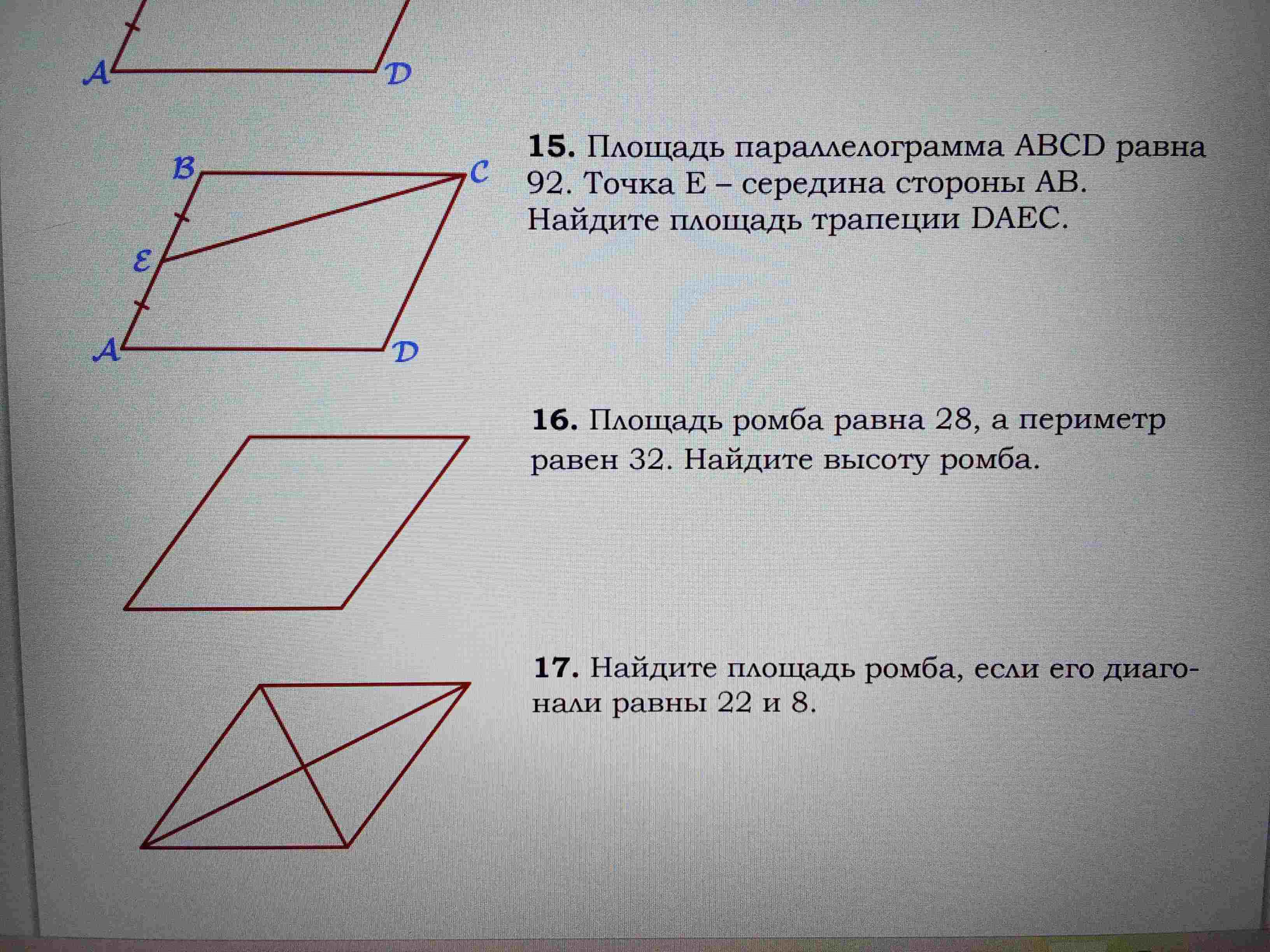 Ответ: Площадь ромба равна 88.