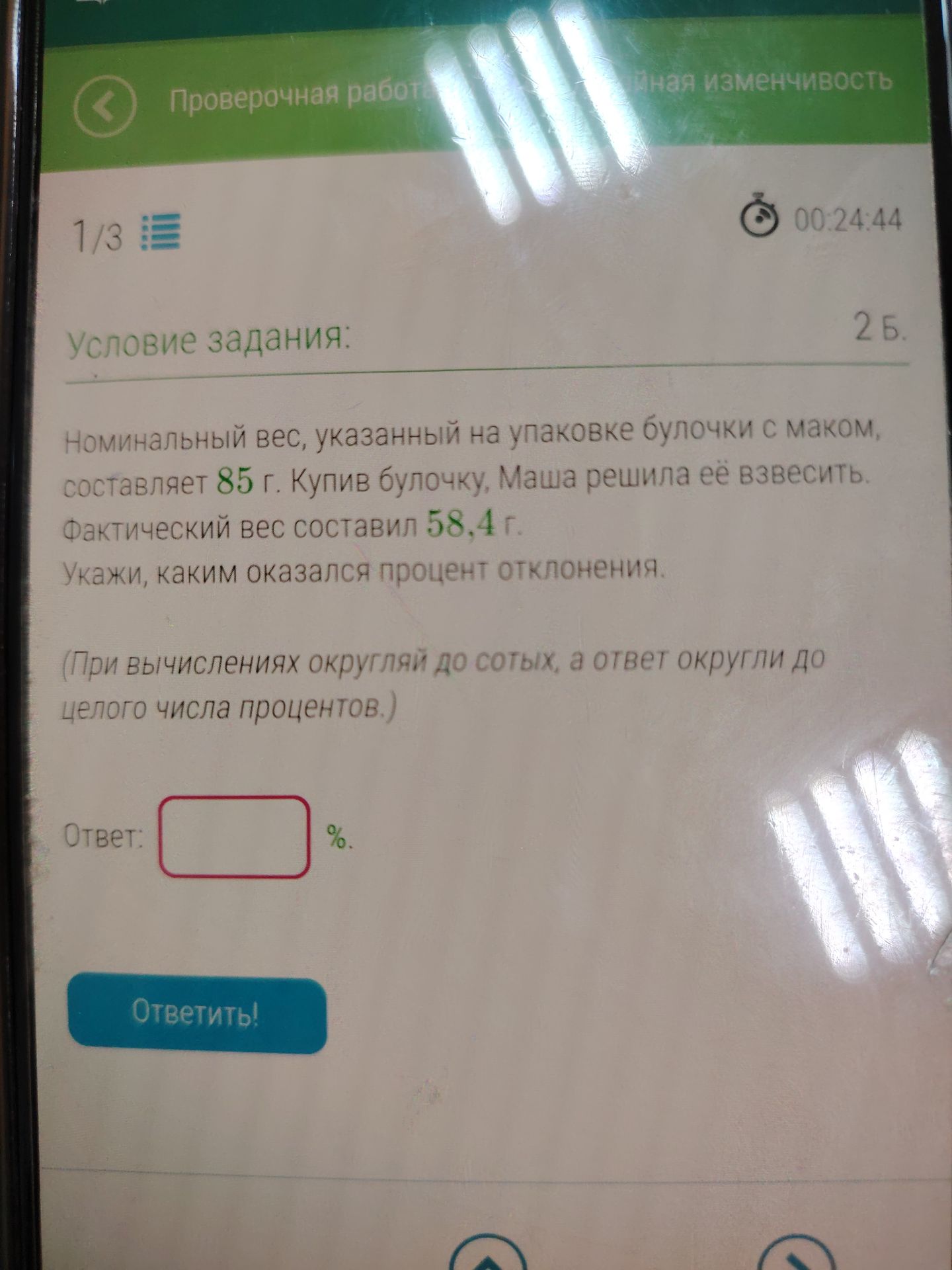 2. Вычислим относительное отклонение в процентах: $$\frac{26.6}{85} \times 100 \approx 31.29 \%$$.