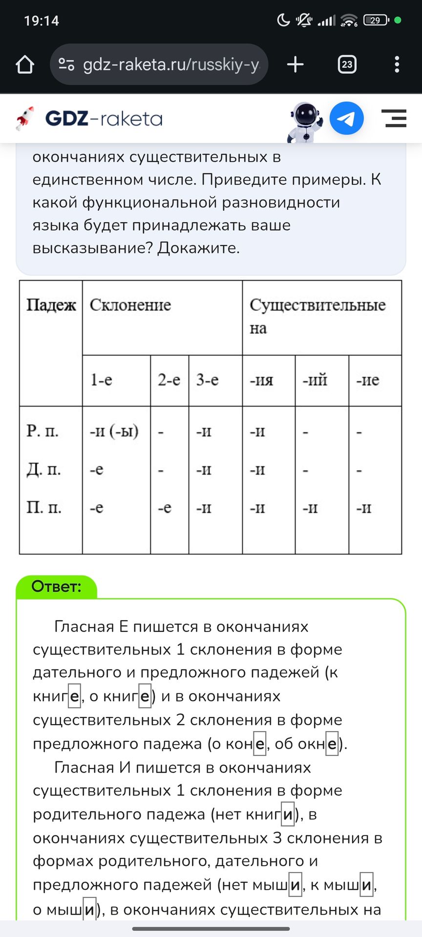 Разновидность языка, к которой принадлежит высказывание об окончаниях существительных, - научный стиль.