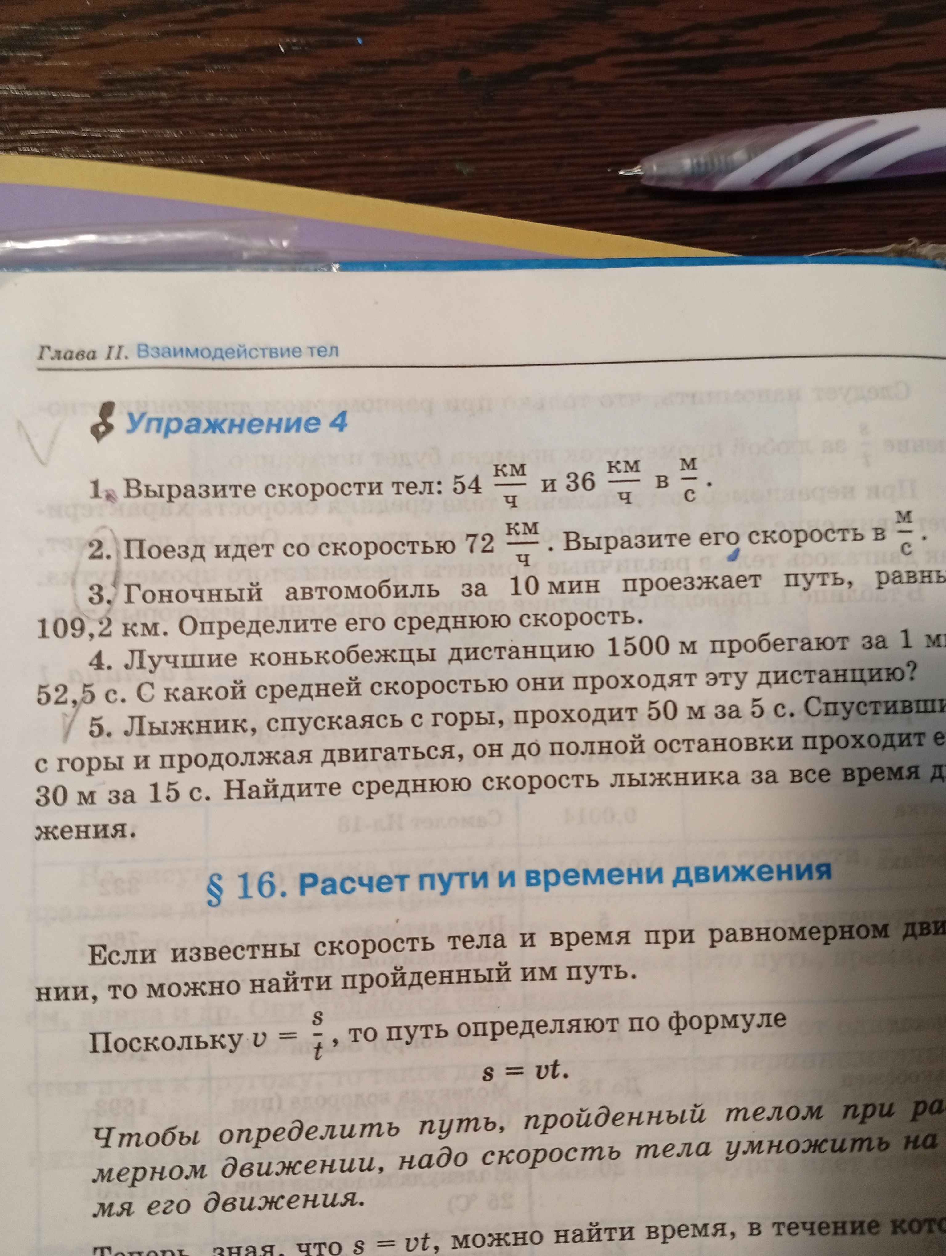 Для перевода скорости из км/ч в м/с нужно умножить значение скорости на $$\frac{1000}{3600}$$ или разделить на 3,6.