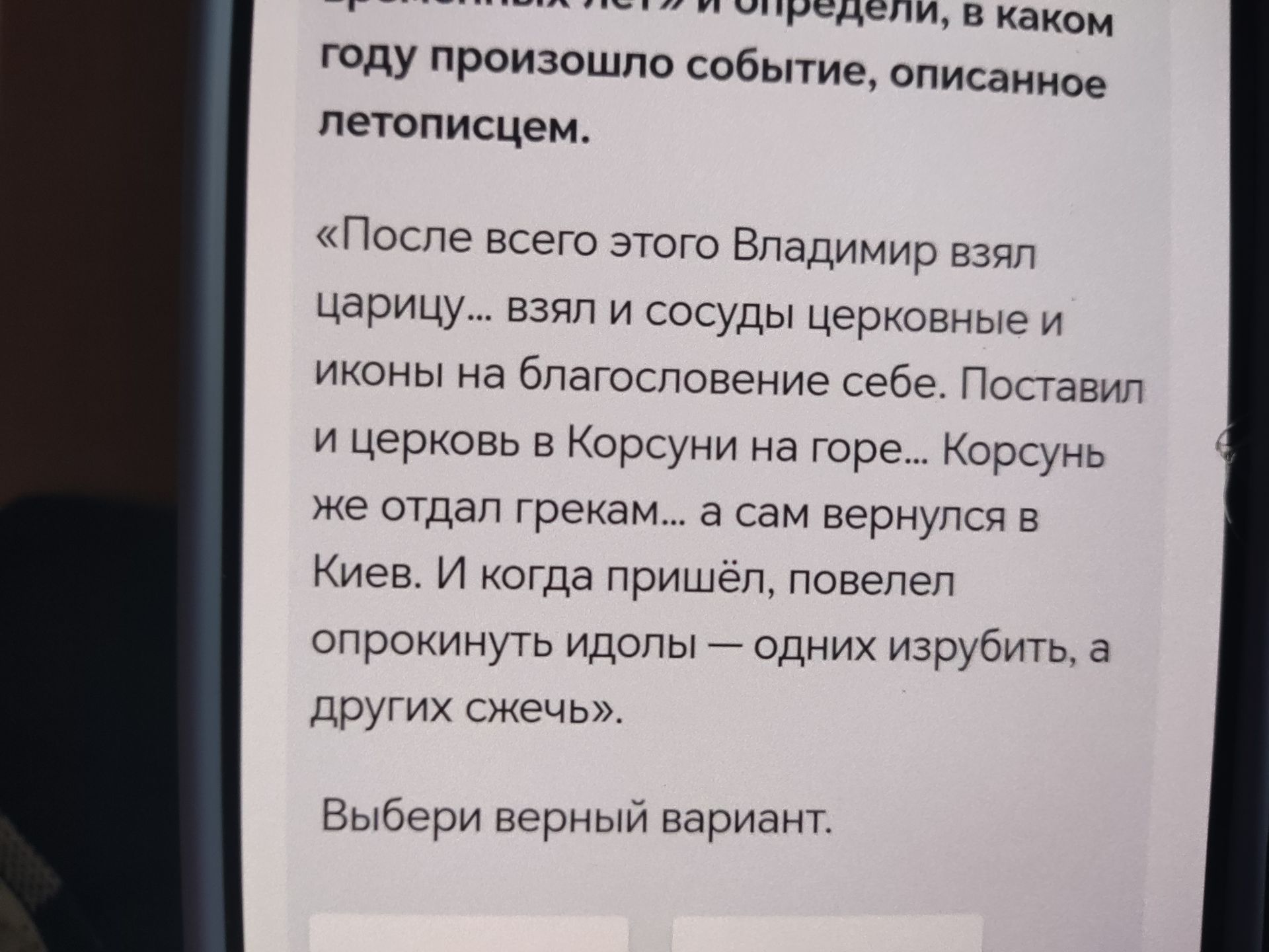 Например, если один из вариантов будет: «Владимир вернулся в Киев и продолжил поклоняться идолам», то это будет неверный вариант, так как в тексте сказано, что он повелел их уничтожить.