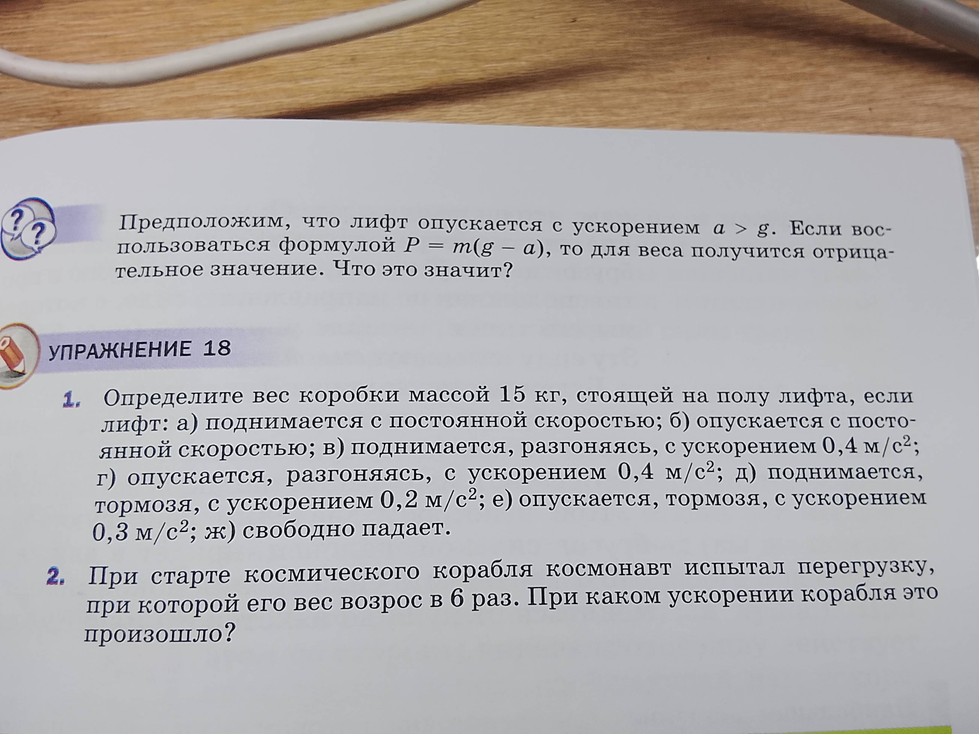 $$6P_0 = m(g + a)$$ $$6mg = m(g + a)$$ $$6g = g + a$$ $$a = 5g = 5 \cdot 9.8 \frac{\text{м}}{\text{с}^2} = 49 \frac{\text{м}}{\text{с}^2}$$