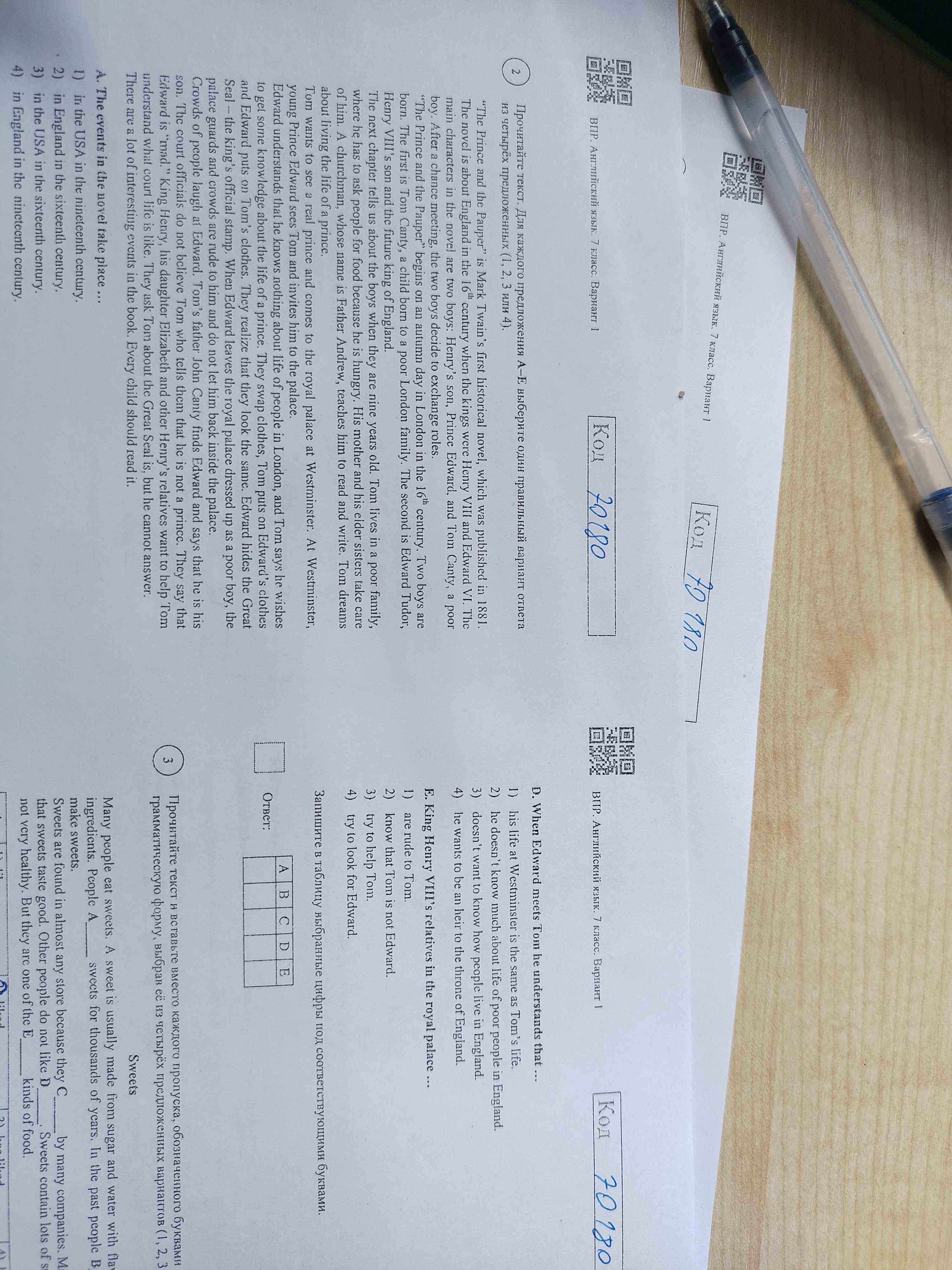 2. Прочитайте текст. Для каждого предложения А-Е выберите один правильный вариант ответа из четырёх предложенных (1, 2, 3 или 4).